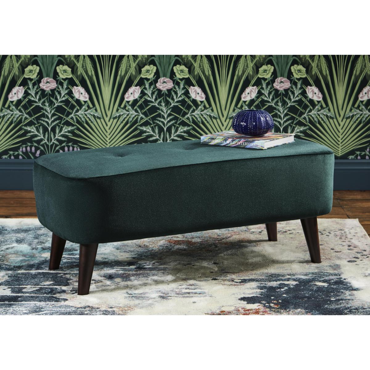 A colourful way to keep your feet comfy, the Botanical plain bench stool is a must-have for lovers of bold and bright décor. Room for two and handmade in the UK. A bold and beautiful footstool inspired by island paradise. Compact retro design. Upholstered in a plush velvet or soft weave fabric. Available with dark or weathered turned legs. Inspired by paradise. Handmade in the UK. Exclusive to Furniture Village. What you need to know. Some fabrics can show wear on areas of more use or in direct sunlight. Patterns aren’t matched, which means every sofa is unique. Please read our upholstery care guide for more advice. Part of the Botanicals collection.