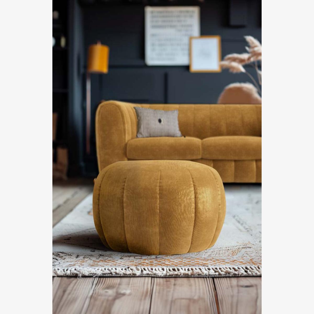 <!--td --> Your home, your rules – when and where you put your feet up is completely up to you. This little beauty is finished in luxe velvet and sports gorgeous golden tones, and can be used in the living room or bedroom to add an accent of subtle colour. It's a winner all round!- The Bowie Stool In Luxe Needlecord Velvet Golden Glow- Measures: H45cm x W70cm x D70cm