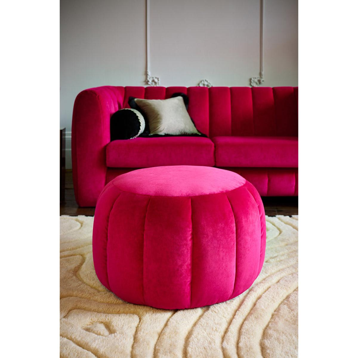 <!--td --> Resplendent in hot pink, and finished beautifully in luxe velvet, this makes a fabulous accent piece in the living room or bedroom – simply style centre-stage, or as a sidekick to your favourite sofa or armchair. Delightful.   - The Bowie Stool In Luxe Needlecord Velvet Harry's Pink- Measures: H45cm x W70cm x D70cm