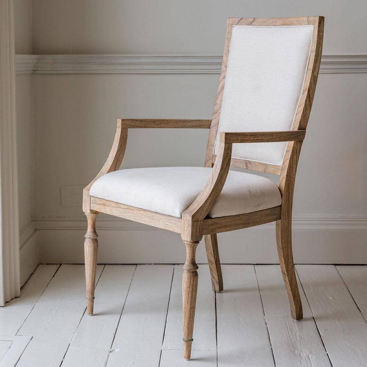 I love this chair for its versatile and timeless appeal. Its classic yet understated design makes it a great addition to traditional or country-style interiors, but it can also be effortlessly paired with more contemporary schemes for an eclectic look. The light wooden frame and neutral upholstery allow it to blend seamlessly with various colour palettes and materials. Styling tips include layering with textured cushions or throws for added comfort and visual interest, and pairing with a matching or contrasting set of dining chairs to create a balanced yet relaxed dining space. It’s particularly effective in airy, light-filled rooms where its clean lines and gentle curves can be showcased.