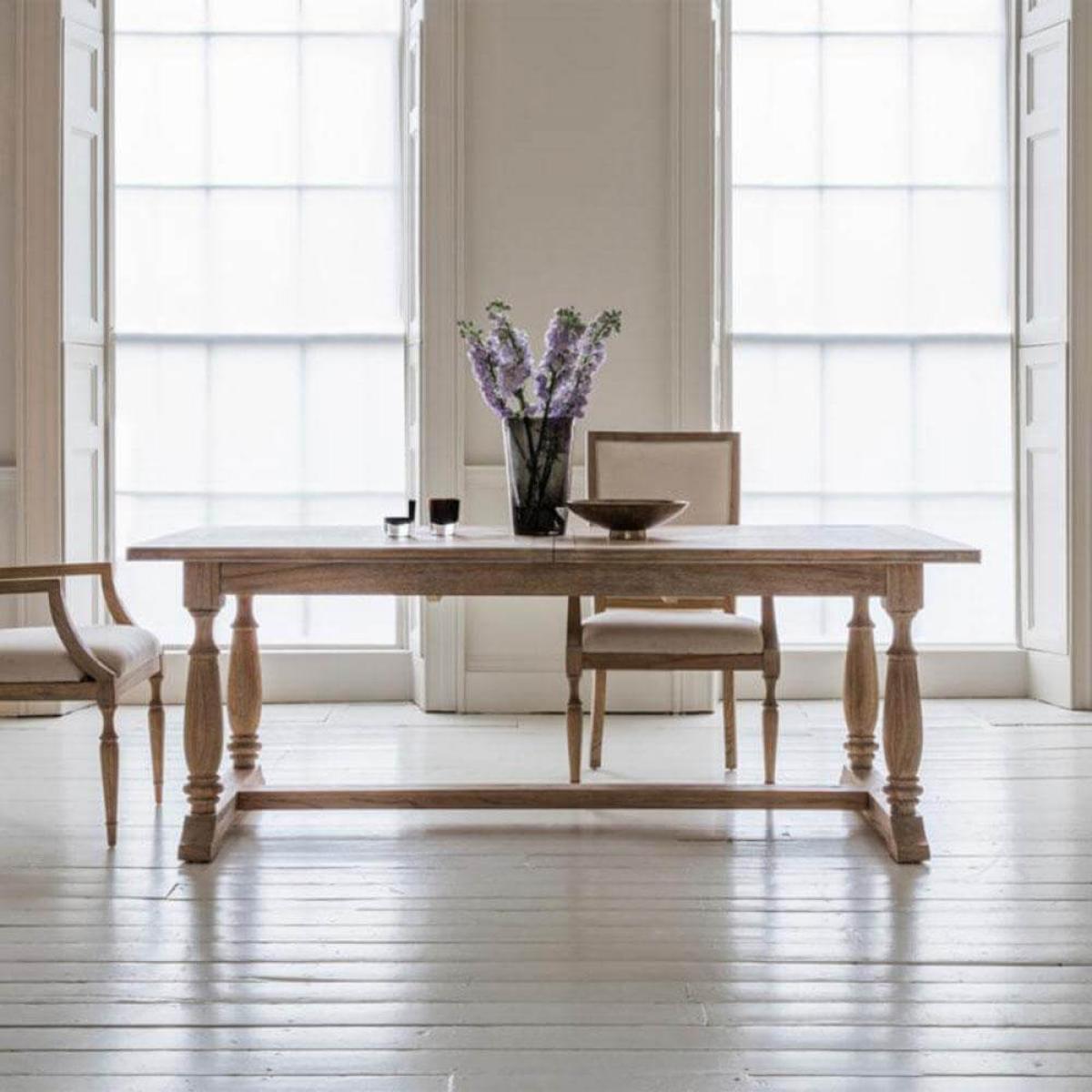 This is a versatile piece that works well in both traditional and rustic interiors, particularly in rooms that benefit from a sense of charm and warmth. I love its classic design and sturdy build, which adds a timeless appeal while remaining practical for everyday use. The extending feature makes it ideal for entertaining or family dinners, allowing flexibility without sacrificing style. When styling, consider pairing it with neutral tones and tactile textiles like linen or wool to enhance its cosy, inviting feel. To keep the look fresh, introduce pops of colour with accessories or tableware, and keep the surrounding decor simple to let the table set shine as a focal point.
