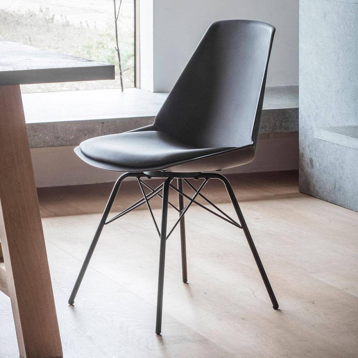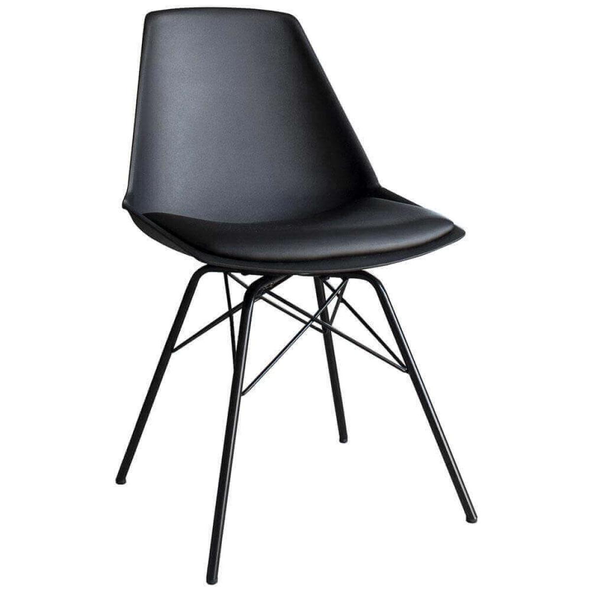 A pack of 4 uniquely contemporary styled chairs with padded seats and stylish metal frames in a black finish. Ideal to add a clean and modern look to your dining set.