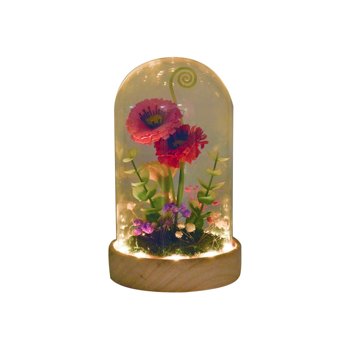 * Beautiful & Eye-Catching Design * Includes Artificial Flowers & Foliage * Made from Glass * Requires 3 x AAA Batteries (Not Included) Add beauty to your home with the Artificial Flower Light Up Ornament, part of Celebrations' wonderful 'The Cottage Garden' range. It features a clear glass dome, pre-filled with realistic faux flowers and foliage, and is attached to light-up wooden base.