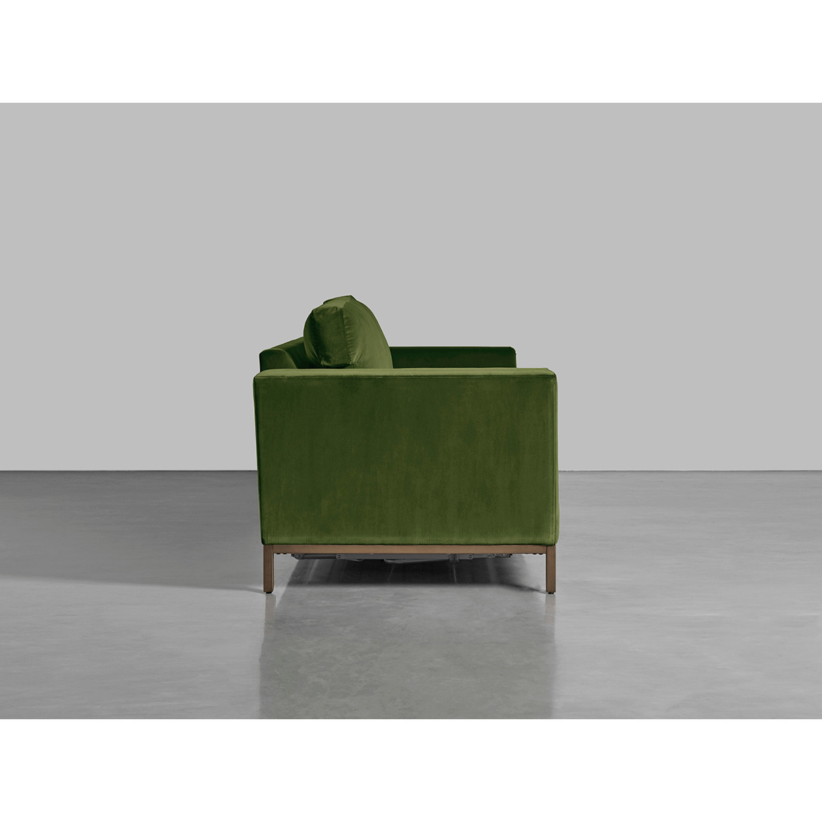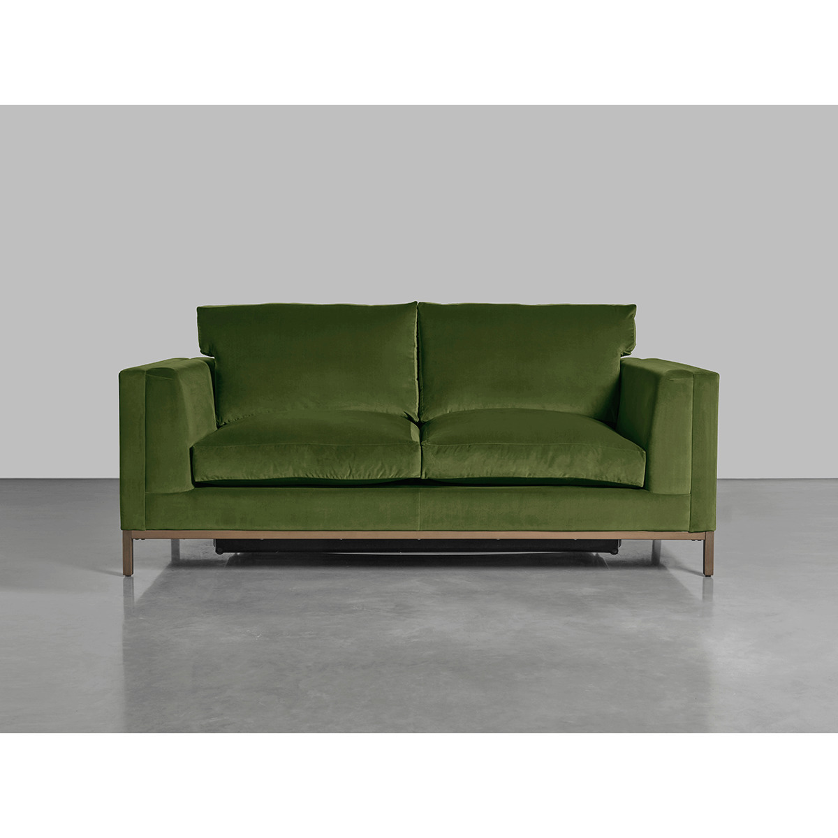Finally, a sofa bed that demands to be centre stage in your interior, rather than being banished to the spare room. Combining a decadent, burnished brass frame and a sleek, rectangular shape, our Deco Sofa Bed will make a fabulous centrepiece in any space, pair with our Deco Armchair and Deco Ottoman for full fabulousness. Made from scratch to your exacting order, you can dial up the glamour with one of six sumptuous velvets, or keep it chic and subtle with the softest cotton linen blend in six pastel shades. We don’t believe in style over substance, so tucked inside this elegant piece you’ll find a premium quality guest bed that gives a restful night’s sleep every night. Each sofa bed is made using only the finest raw materials including sumptuous feather wrap cushions and deep fully sprung mattresses. The bed frame mechanisms are made in Europe from one of the world's leading sofa bed manufacturers with tubular metal for strength, webbing for the seat comfort and wood support slats for sleep comfort. These are a clever two fold action which is easy to operate and gives firm support to a good night's sleep. Important: Before buying your Custom Made upholstery, please check the dimensions of each product and that it will fit in your intended room. Please also check that it will fit through any doorways, hallways and staircases, as all Custom Made Upholstery items are non-returnable. Click here to view our Upholstery FAQs;Click here for full Upholstery Terms and Conditions