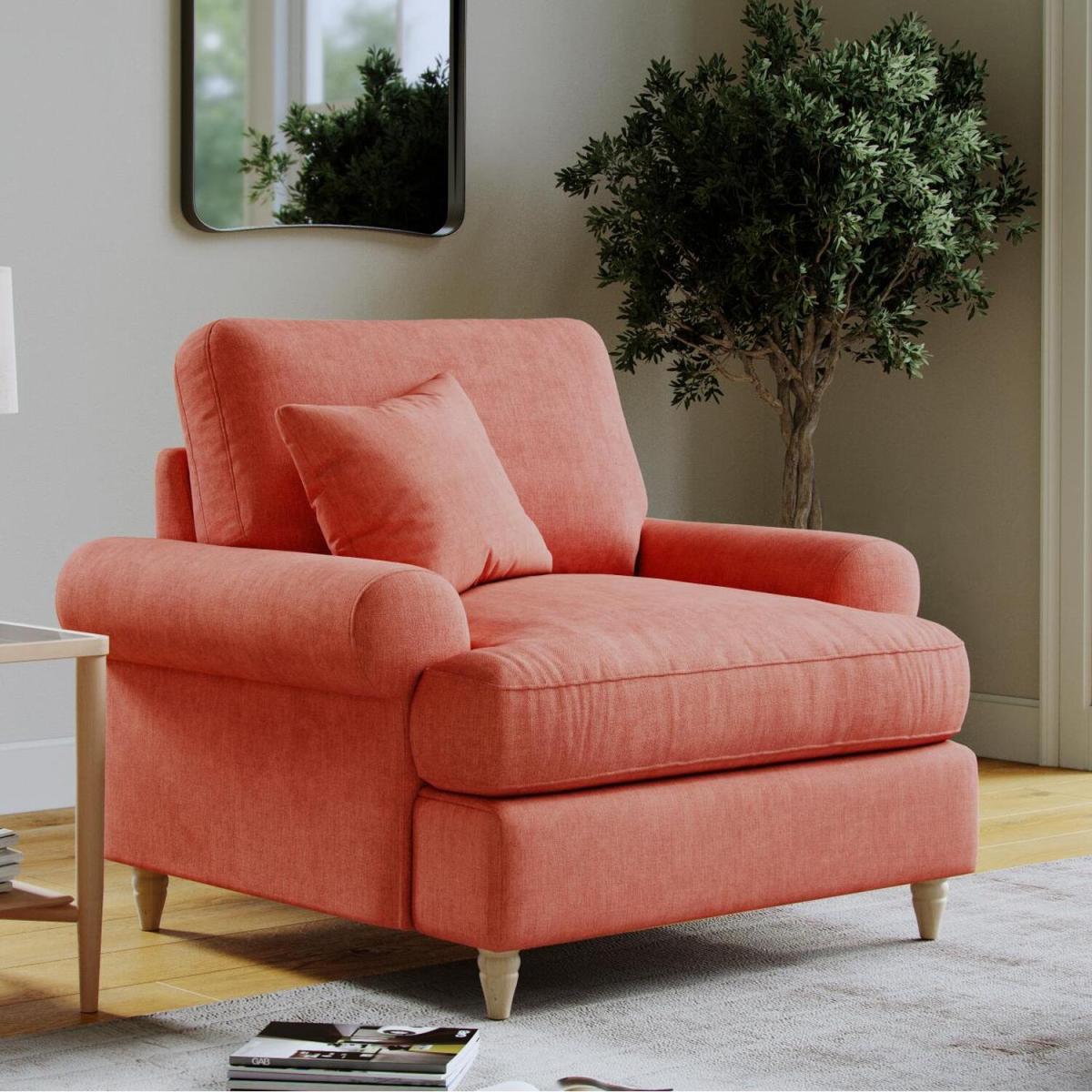 I’m a fan of the Dolly chair in coral because its clean lines and softly rounded arms bring a modern yet comfortable feel to a room, while the warm hue injects just the right amount of colour without overwhelming. It suits Scandi-inspired spaces when paired with light timber furniture, or adds a bright contrast in a predominantly neutral living room. For styling, layer in a patterned cushion or a textured throw in complementary shades of terracotta or muted pink, and position it beside a slim-legged side table to keep the look fresh and uncluttered.