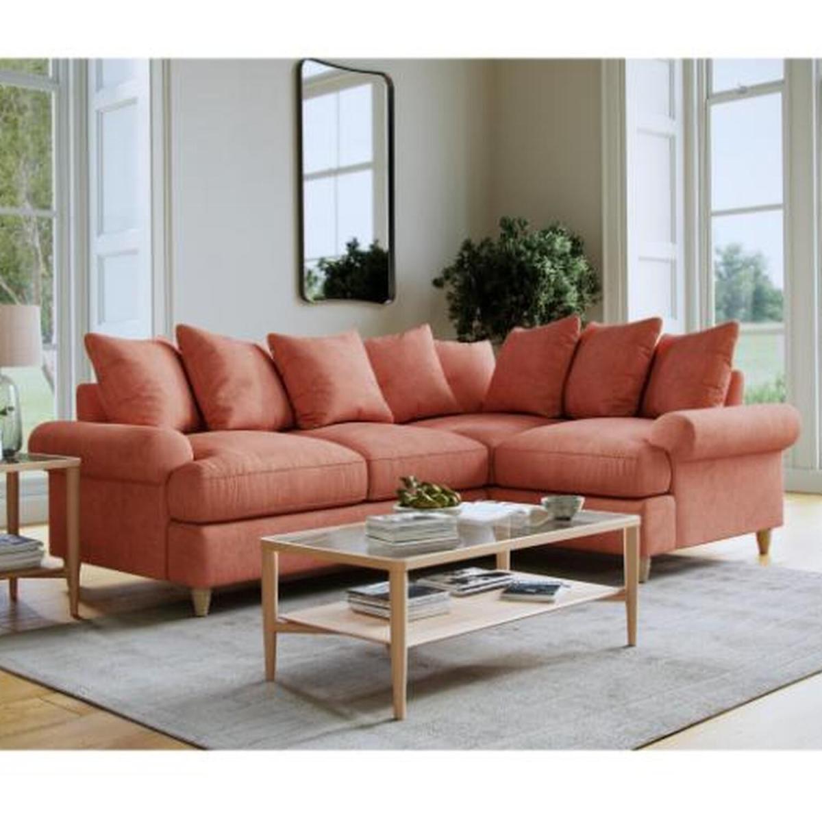 I love this sofa because of its versatile shape and vibrant coral hue, which can really uplift a neutral or muted interior. It's ideal for making a statement in contemporary or Scandinavian-style spaces, working well with light woods, soft textiles, and minimal clutter. When styling around it, consider adding cushions in complementary or contrasting colours for extra visual interest, and keep accessories simple to let the sofa remain the focal point. Its comfortable proportions make it perfect for relaxed family living or entertaining, and the colour works surprisingly well in both sunny, light-filled rooms and more subdued, cosy settings.