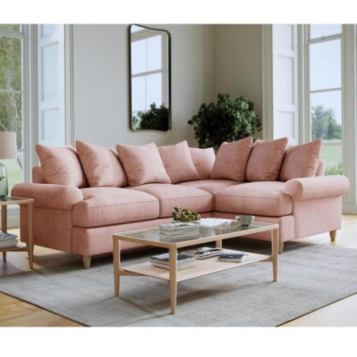 The Dolly corner sofa in pastel is a fantastic choice for creating a soft, inviting focal point in a living space. I love how its colour lends itself well to interplays of muted tones or makes a charming contrast in more neutral settings. It works really well in both contemporary and classic interiors, especially when paired with natural wood or metal accents. For practical styling, consider adding textured cushions or throws to bring in visual interest and comfort. Positioning the sofa with a statement rug or alongside some tall greenery enhances its inviting appeal - perfect for casual family lounging or a cosy gathering spot.