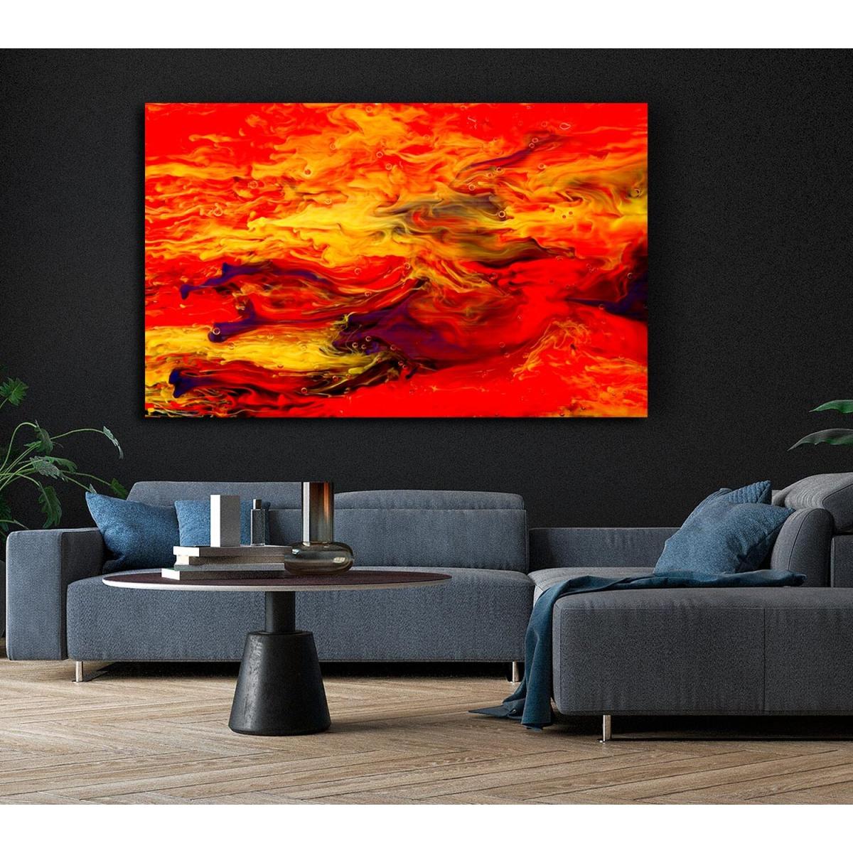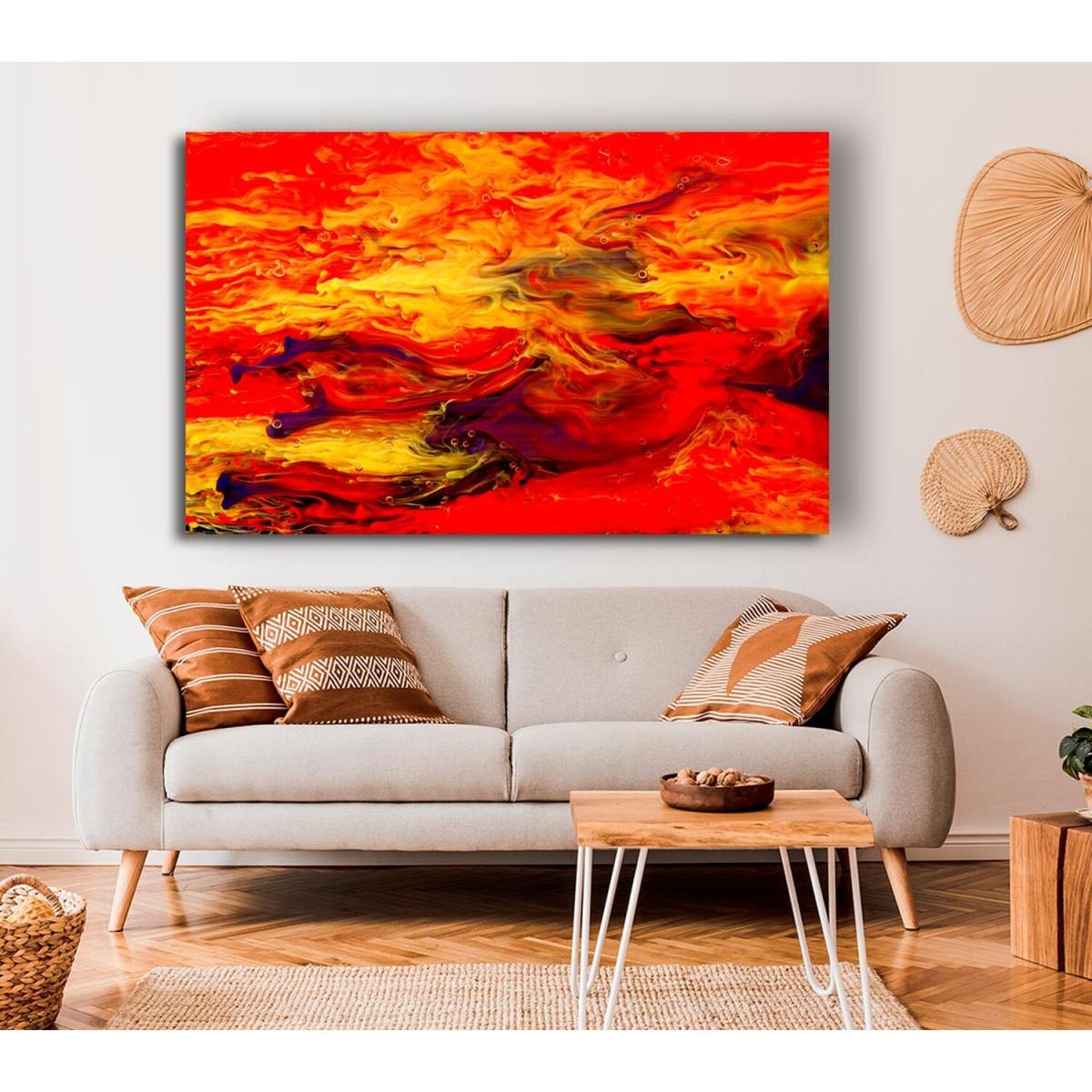 The Dragon Of The Sky canvas is a bold statement piece that works well in modern or eclectic interiors, especially where a splash of colour can elevate the space. I love its vibrant yellow hue paired with fiery reds and subtle greys - perfect for adding warmth and energy. When styling with this artwork, consider keeping surrounding furniture and decor minimal to let it really stand out, or complement it with other warm tones and textured materials. It also lends itself well to larger walls in living rooms or open-plan areas, where its size can truly be appreciated. Practical tip: hang it at eye level for maximum impact and ensure the surrounding wall is neutral or lightly coloured to avoid clashing with its vivid palette.