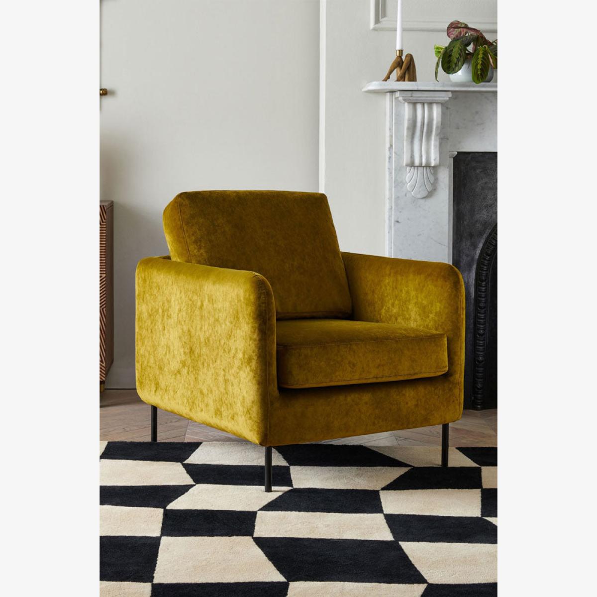 <!--td --> This beautiful armchair has its roots in the clean lines and neat angles of mid-century design principles (especially those dinky little legs – just gorgeous). Finished in gleaming green velvet for a textured, tactile quality that adds warmth and character, it makes the perfect accent chair for the living room or bedroom, and adds a touch of elegant grandeur to your space. We love how it works just as well with a minimalist aesthetic as it does a more rustic or maximalist approach – keep things simple with one block-colour cushion, or layer your textures by adding a soft woollen throw to your cushion, and style on the back or over the arm of a chair. However you like to style this velvet armchair, you’ll find it a super-comfy spot in which to indulge in a little R&R - compliments are guaranteed... - The Edie Needlecord Velvet Green Armchair - Measures: H83cm W75cm x D84cm- Material: Needlecord velvet