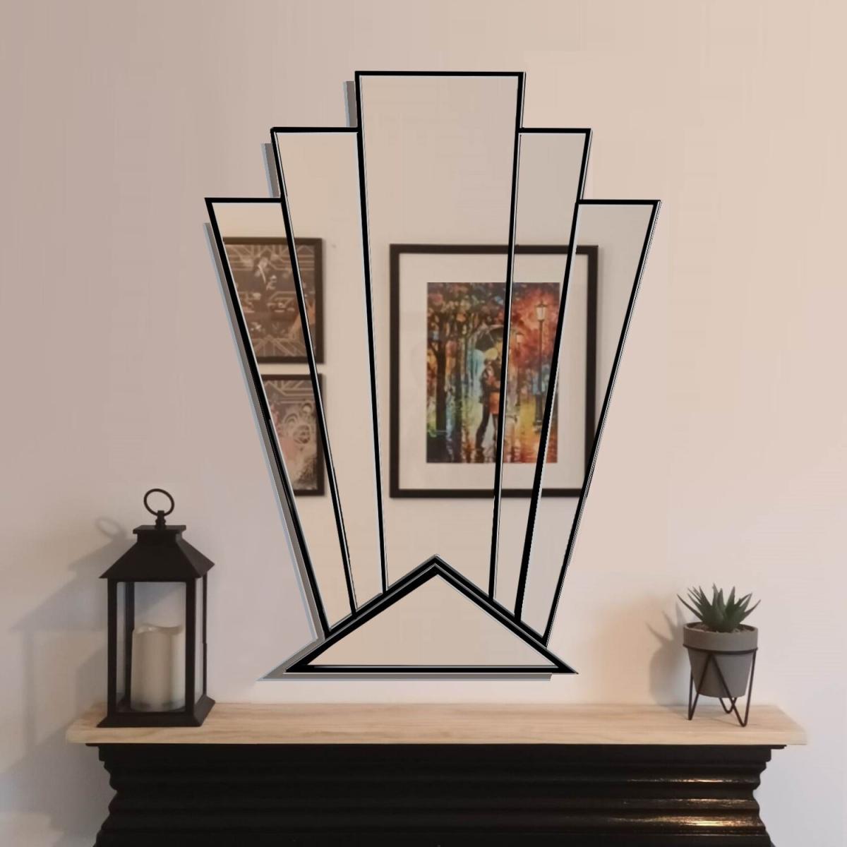This elegant Art Deco Mirror features a strong triangular base and a fan-shaped design to enhance any room in your home. The bold lines and accents of this classic-style mirror are sure to make a statement. Designed and handmade only at JPC Mirrors