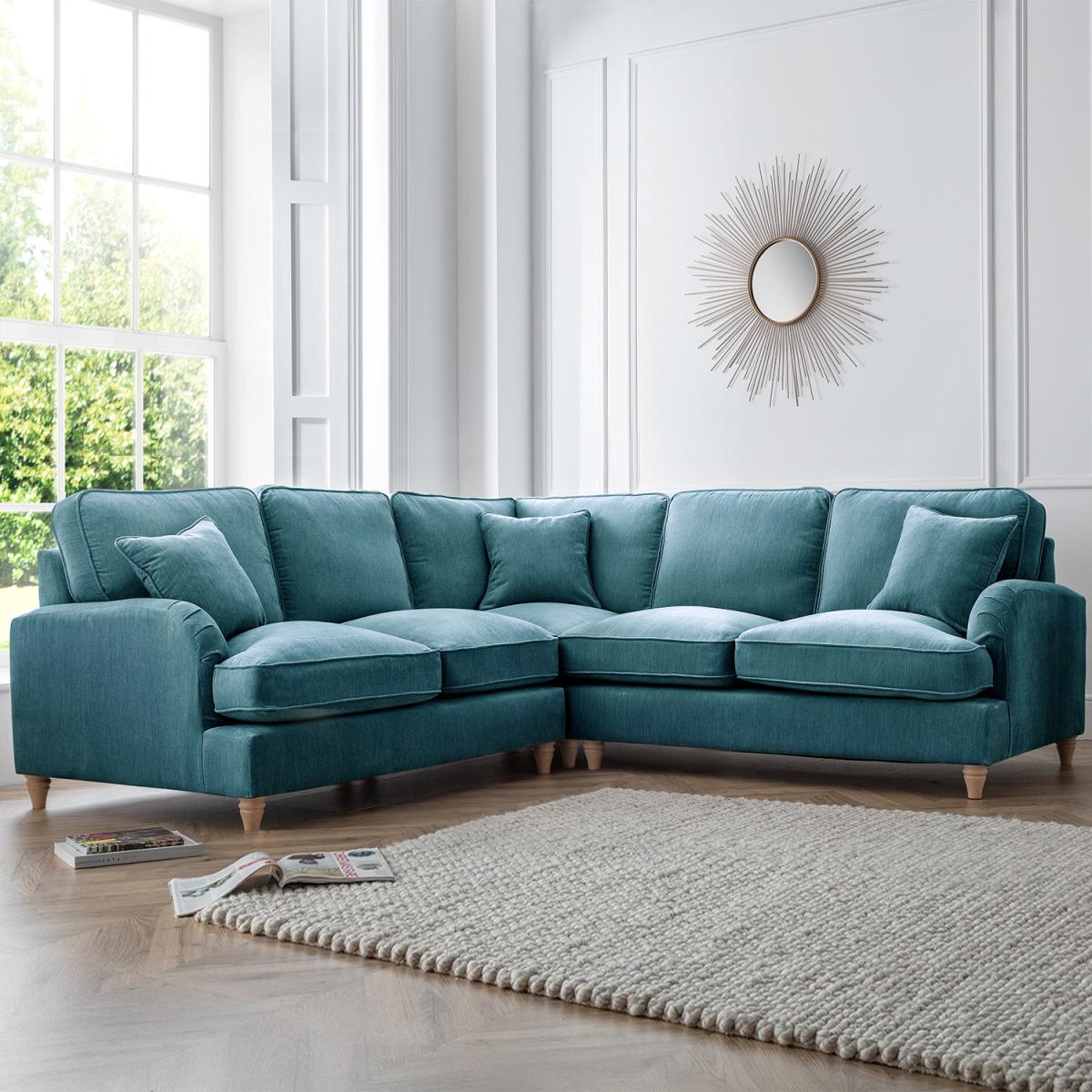 I love the bold emerald hue of this corner sofa as it adds a vibrant focal point to any living space. Its generous size makes it perfect for family rooms or open-plan living areas, offering plenty of seating without feeling overwhelming. It works well in modern interiors with clean lines and neutral palettes, but also pairs nicely with richer textures like velvet cushions or layered throws to create a cosy, luxurious feel. For styling, consider keeping accessories minimal to let the colour shine, and place it against a light wall to enhance its visual impact. Elevate the look with eye-catching artwork or a statement rug underneath - the key is to let the sofa be the star while maintaining a balanced, inviting atmosphere.