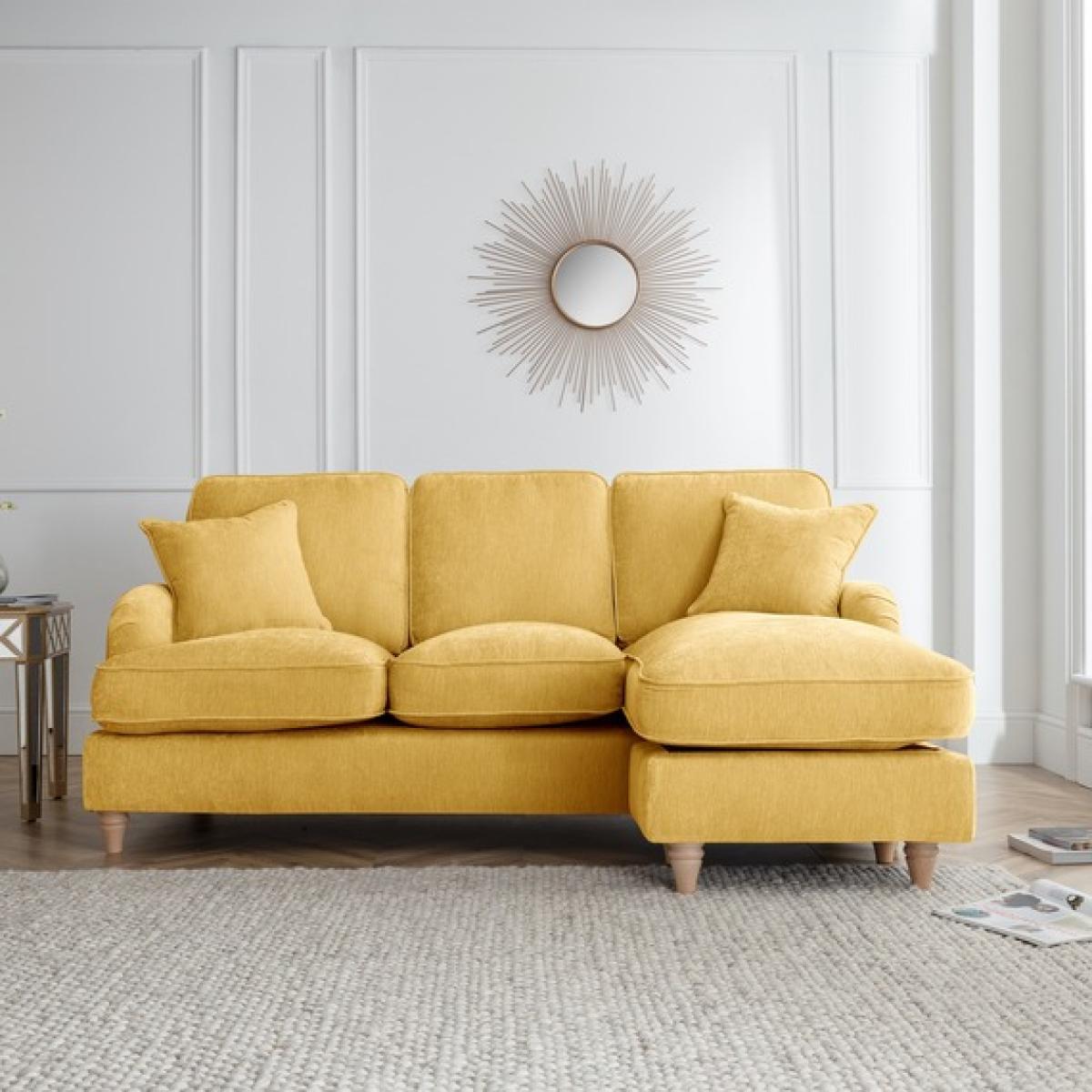 I love the right-hand chaise in this corner sofa for its versatility and contemporary appeal. The gold finish adds a touch of glamour, making it a great statement piece in both modern and eclectic interiors. It works particularly well in neutrally coloured spaces, where the metallic accent can really stand out, or in more vibrant schemes that embrace bold colour matches. Practical styling tips include pairing it with textured cushions in rich fabrics or layering with throws for added comfort. To keep the look fresh and inviting, place side tables nearby for convenience, and consider a statement rug to anchor the seating. Overall, it’s a stylish choice that can elevate a living room’s aesthetic while providing ample seating.