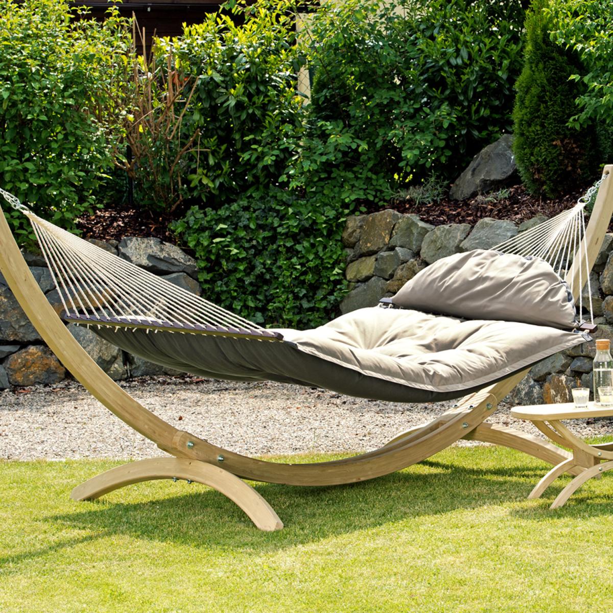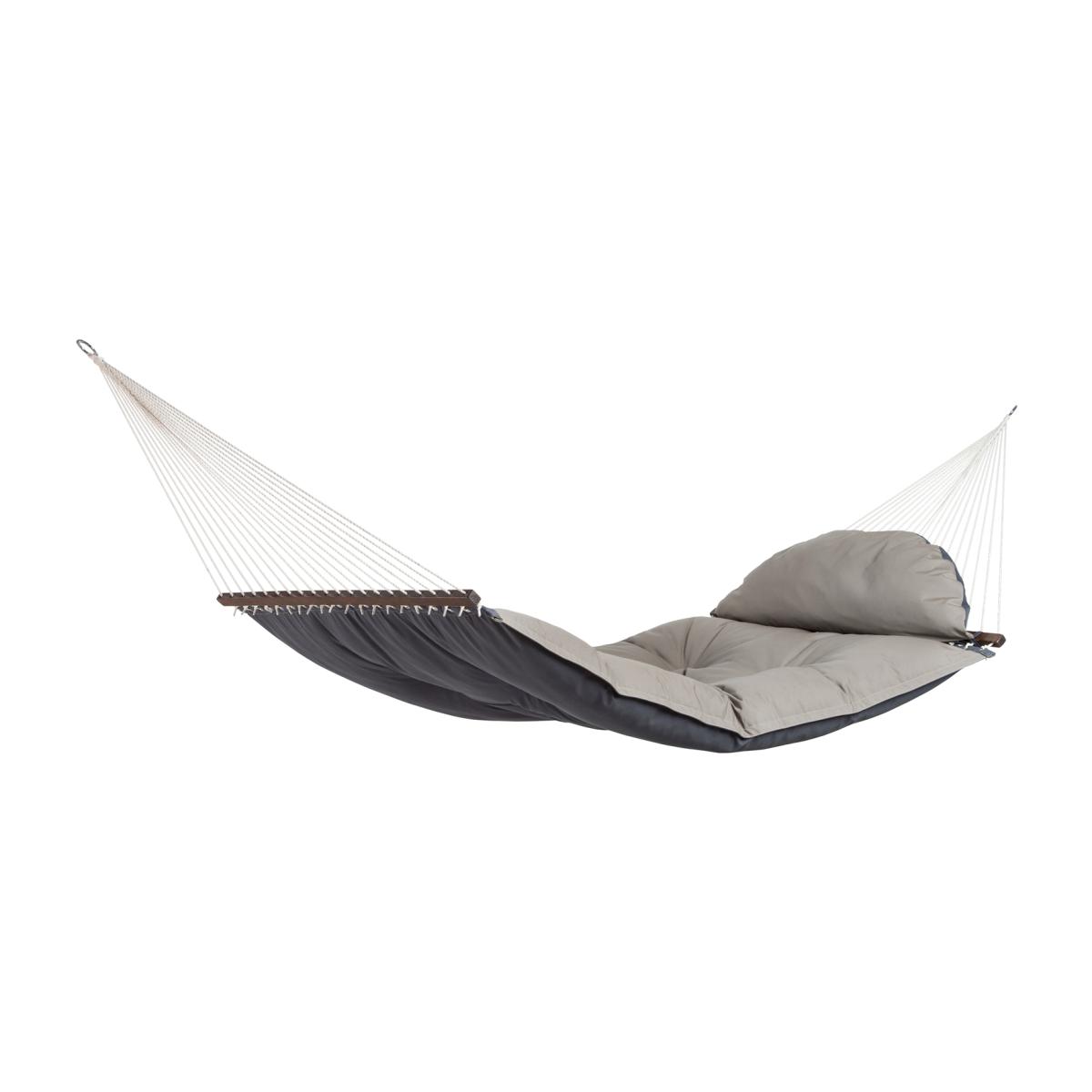 The world's most comfortable hammock, super padded, cosy and waterproof means you can use this hammock all year round. You can also reverse it to show a different colour shade. It's like the famous Fatboy hammock only 100 times better! The extra-thick, water-repellent and rapidly drying upholstery is your guarantee of perfect relaxation. The highly durable Agora cover is as soft as cotton, but it is exceptionally light-resistant (light fastness 7/8) and weatherproof. It is also water repellent, proof against mildew, insensitive to dirt and easy to clean.