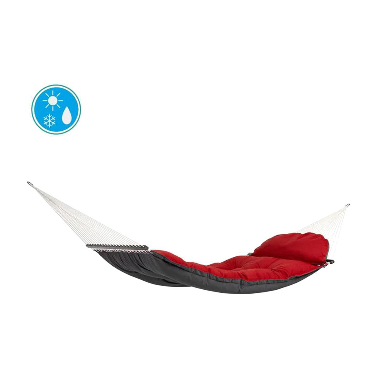 The world's most comfortable hammock, super padded, cosy and waterproof means you can use this hammock all year round. You can also reverse it to show a different colour shade. It's like the famous Fatboy hammock only 100 times better! The extra-thick, water-repellent and rapidly drying upholstery is your guarantee of perfect relaxation. The highly durable Agora cover is as soft as cotton, but it is exceptionally light-resistant (light fastness 7/8) and weatherproof. It is also water repellent, proof against mildew, insensitive to dirt and easy to clean.
