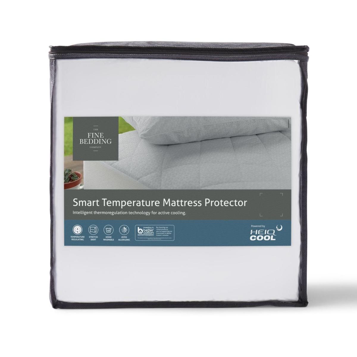 Stay cool and comfortable all night with our Smart Temperature Mattress Protector. Powered by Hei. Q's Activated Cooling tech, it delivers instant and continuous cooling as your body temperature rises. The soft, quilted 200T. C cotton cover features a bio-based system that senses heat and moisture, triggering evaporative cooling. Once optimal temperature is reached, the effect eases to prevent chills. Machine washable and quick drying, with lasting performance wash after wash. Suitable for super king beds. Non-allergenic. Cotton cover. Smartfil Microfibre filling. Secured by elasticated skirt. Size L180, W200cm. Machine washable. Suitable for tumble drying.