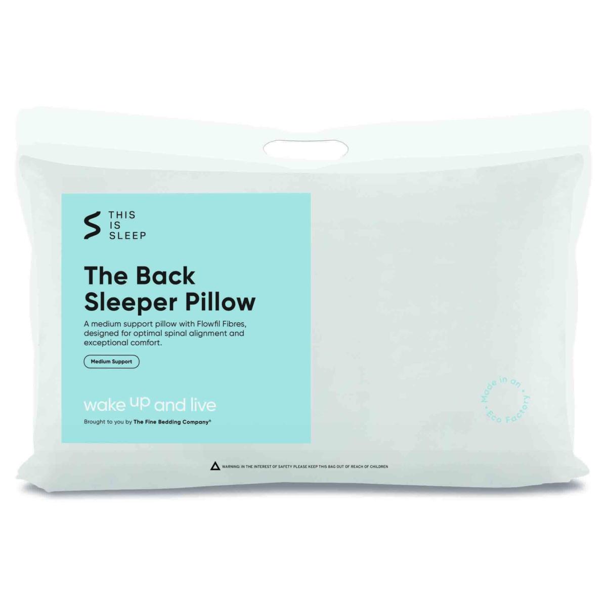 The Back Sleeper Pillow is a medium support pillow designed for optimal spinal alignment and exceptional comfort. Perfect for back sleepers, the depth of this pillow is tailored for optimal head and neck support so you can wake up feeling refreshed each morning. It's filled with Flowfil Fibres that are both shape-retaining for easy home washing, and supportive for a great night's sleep. The pure 230 thread count cotton cover with box edge construction adds the final touch of luxury. Size: 69x43x5cm 230 thread count cotton cover 100% Polyester filling Shape-retaining Flowfil fibres Home washable at 40 degrees Hypoallergenic
