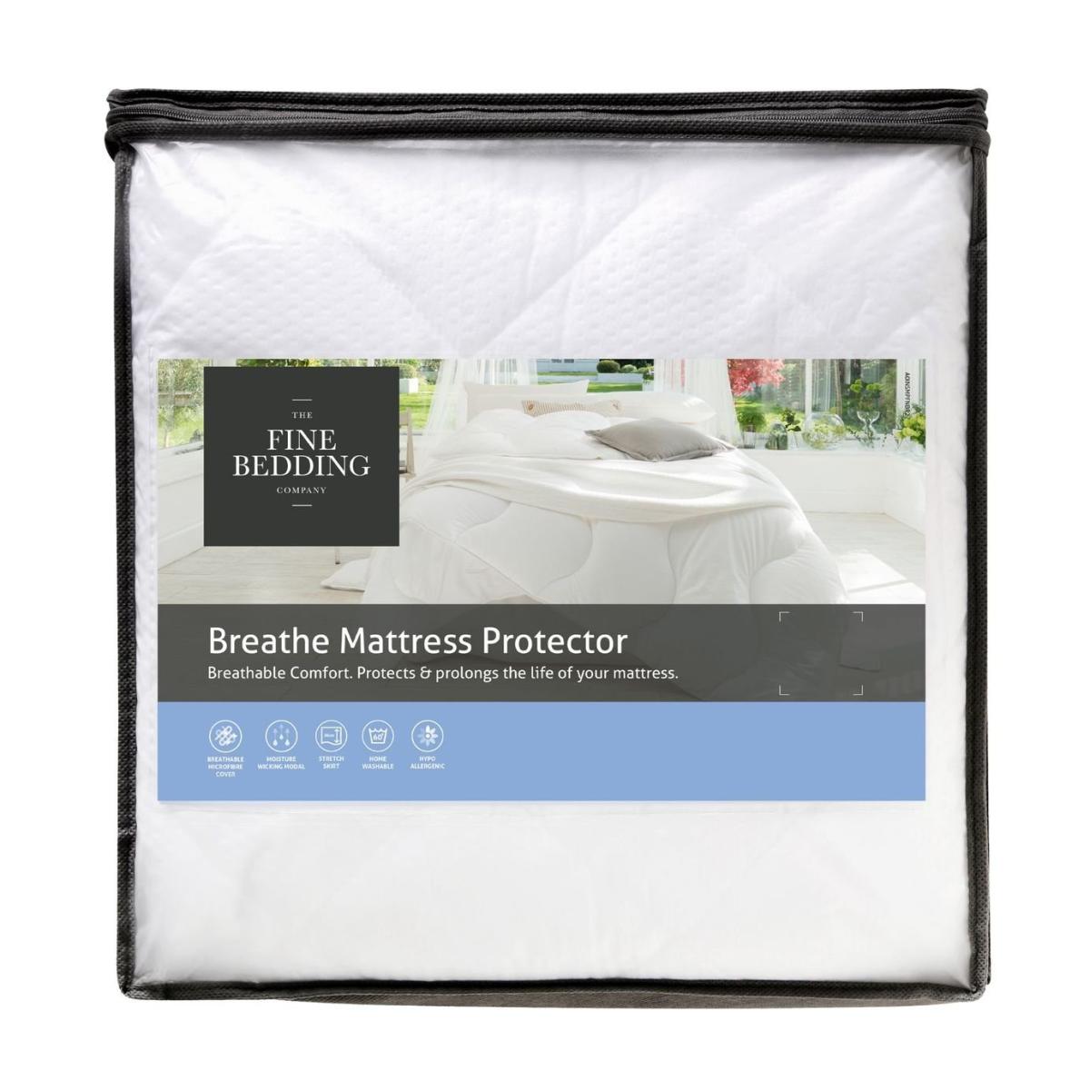 Add a layer of comfort and freshness with our Breathe Mattress Protector. Filled with advanced Smartfil fibres and breathable Modal, derived from natural wood pulp, it draws moisture away for a cool, dry sleep. The soft microfibre cover and elasticated corners ensure a secure fit and easy use. Hypoallergenic and fully washable at 60. C, it's perfect for allergy sufferers and everyday convenience. Sleep better with enhanced comfort, hygiene, and breathability. Suitable for double beds. Non-allergenic. Microfibre cover. 80% Smartfil Microfibre / 20% Modal filling. Secured by elasticated skirt. Size L135, W190cm. Machine washable. Suitable for tumble drying.