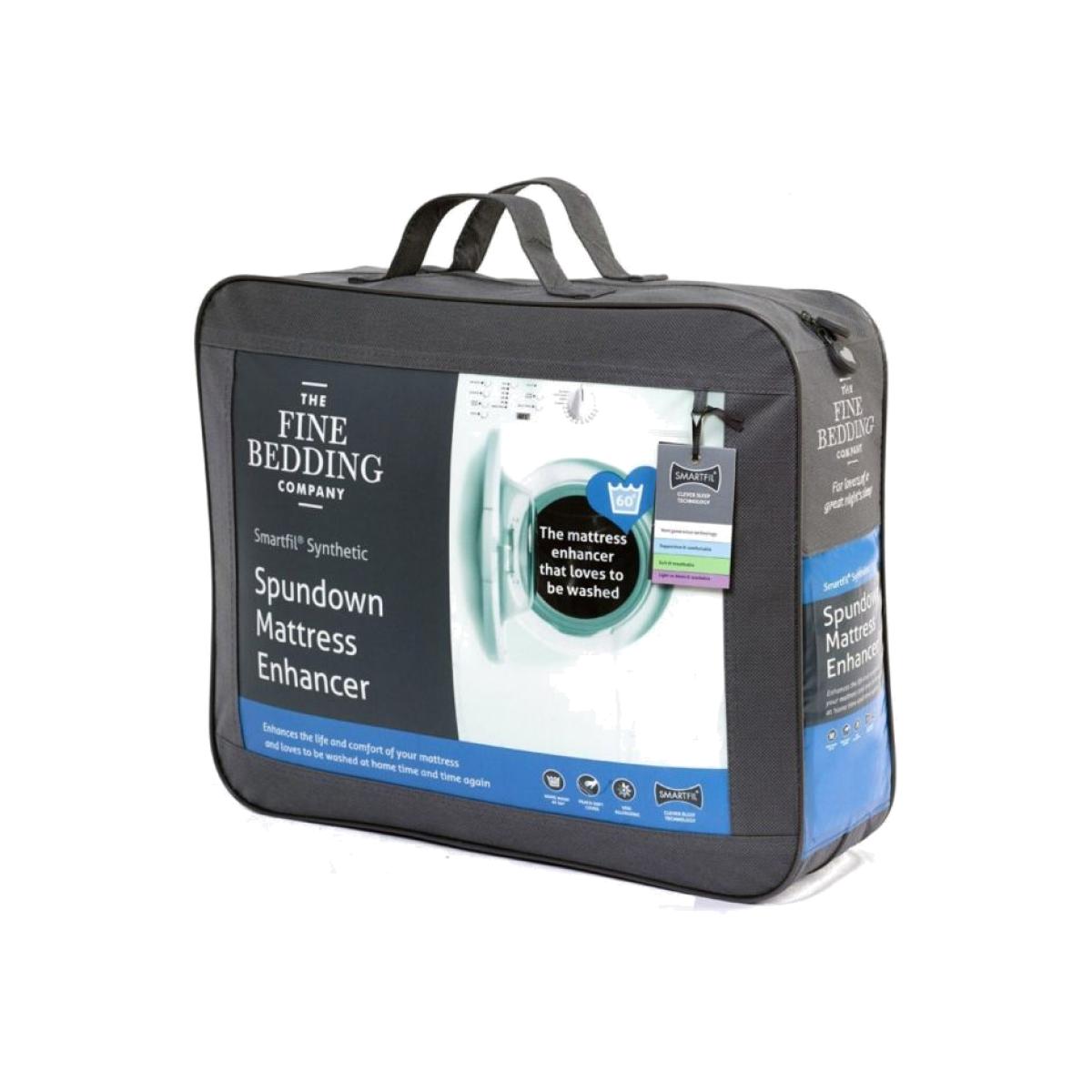 The luxurious Spundown mattress enhancer is a washable mattress topper that has been generously filled with 100% Smartfil® fibres for added softness and encased in a peach soft cover that feels lush against the skin. Aside from providing extra comfort and softness to your mattress (this can make a great addition if your mattress is a few years old and in need of a little boost), it can also be washed in the comfort of your home at 60°C to kill off dust mites providing great peace of mind and improving sleep quality for allergy sufferers. Filled with 100% Smartfil® fibres Washable at home at 60. C 100% Polyester peachsoft cover Dimensions:Single - 90cm x 190cmDouble - 135cm x 190cmKing - 150cm x 200cmSuper King - 180cm x 200cm * Please note: The supplier is currently updating some of their packaging so the packaging you receive may vary from the images above