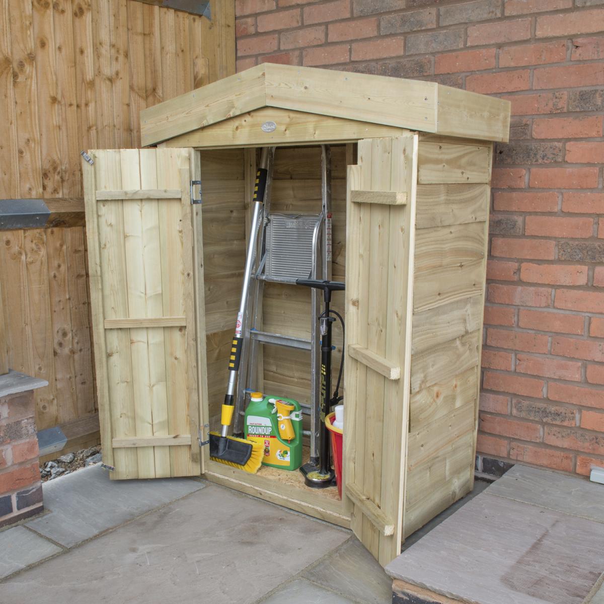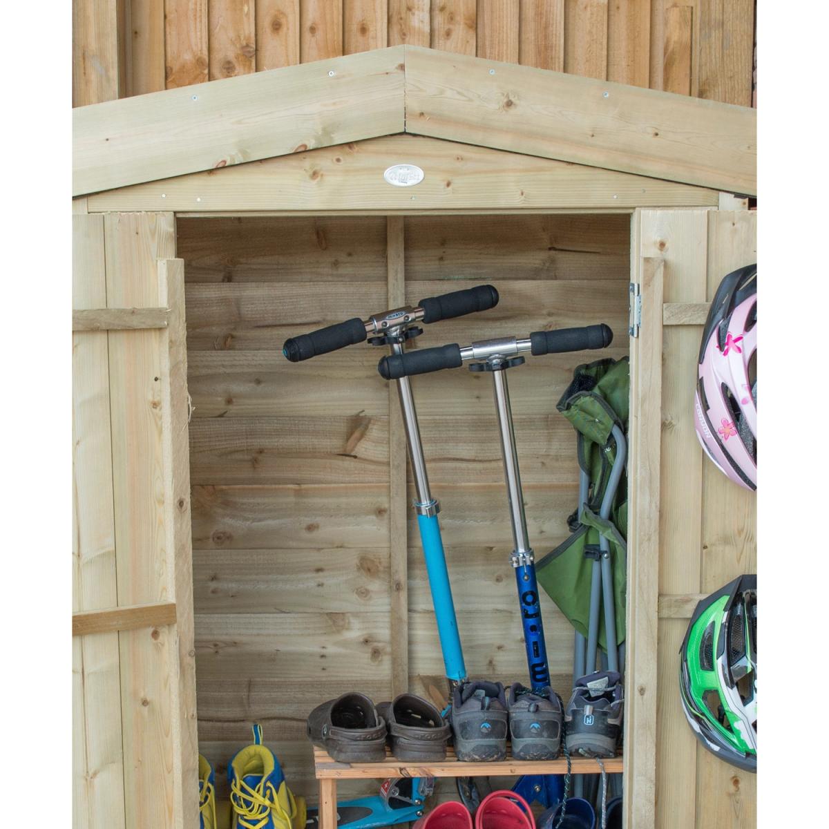 The Forest Apex Garden Store is designed to house a wide range of outdoor equipment. With a roof height of just under six feet it is perfect for storing long handled gardening tools, barbecues or even folding furniture. A relatively small footprint means it is perfect for positioning against a wall or fence and with its natural colour finish, it blends attractively into any garden. Made from durable, pressure treated material, this store is able to withstand all types of weather.