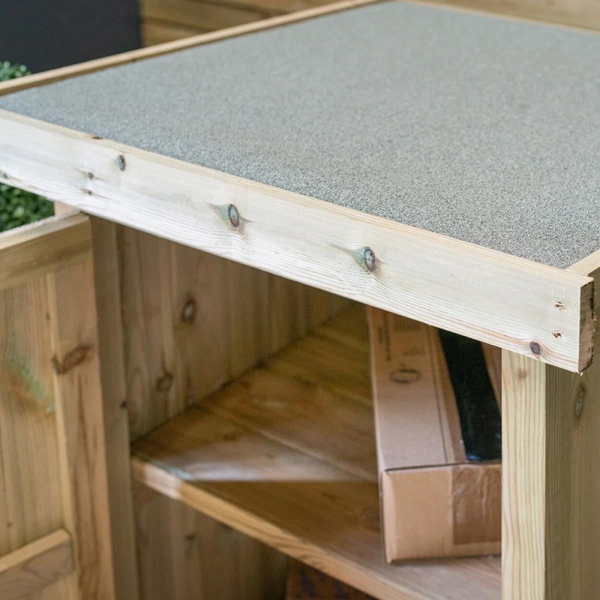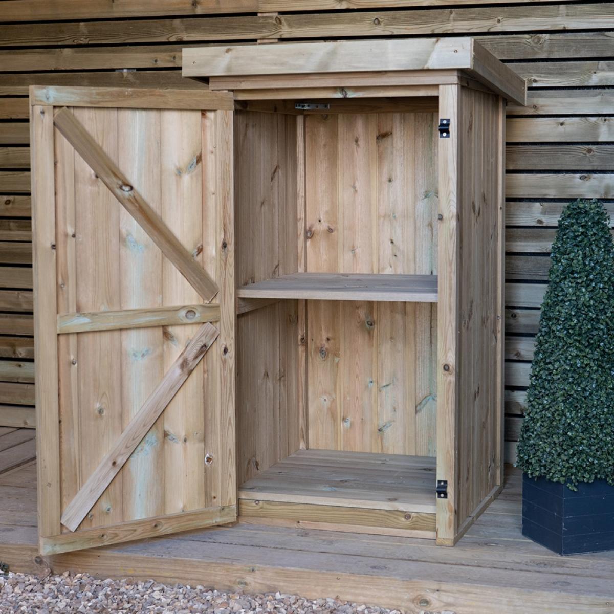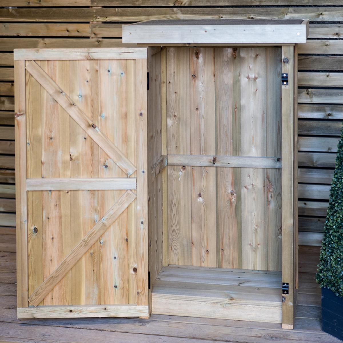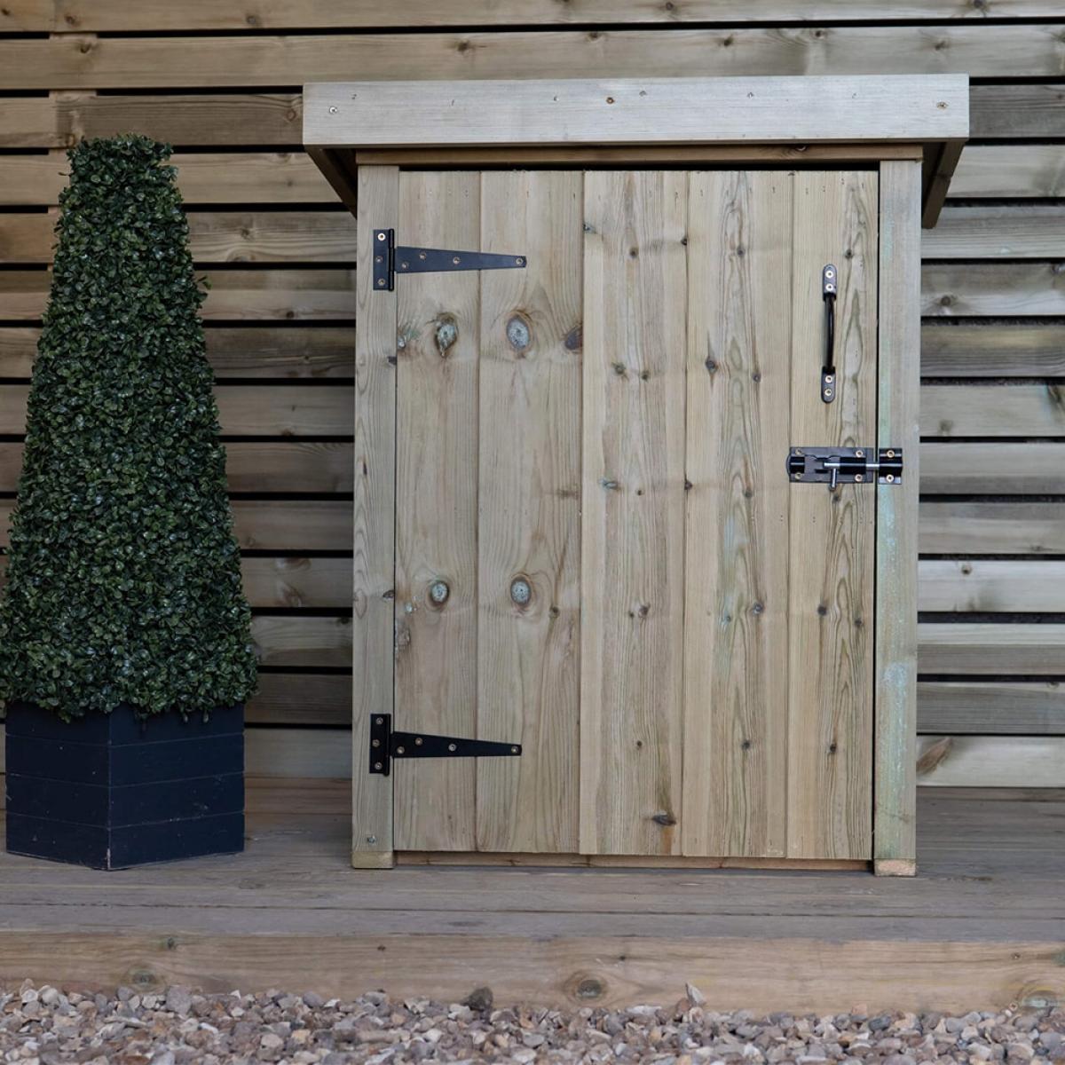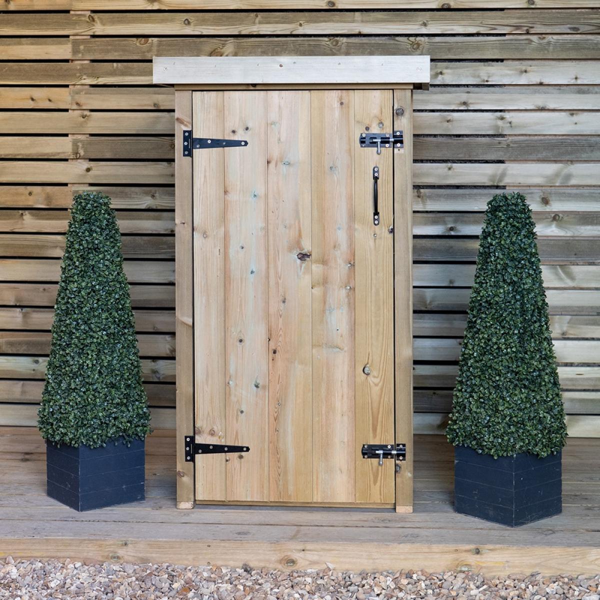 With The Garden Village Parcel Store - gone are the days of soggy boxes and damaged packages! There is nothing worse than hitting checkout and not knowing where your delivery will be dropped. You'll have peace of mind if you're not in or can't get to the door right away. Made from certified FSC timber; the tongue and groove frame and slanted mineral felt roof offer protection for all of your new purchases. Behind the full length door with bolt locks, you have the option to create two compartments with the full width shelf. For larger boxes, simply remove! Not expecting any packages? Utilise your garden storage unit and stow boots, brollies and other outdoor essentials.