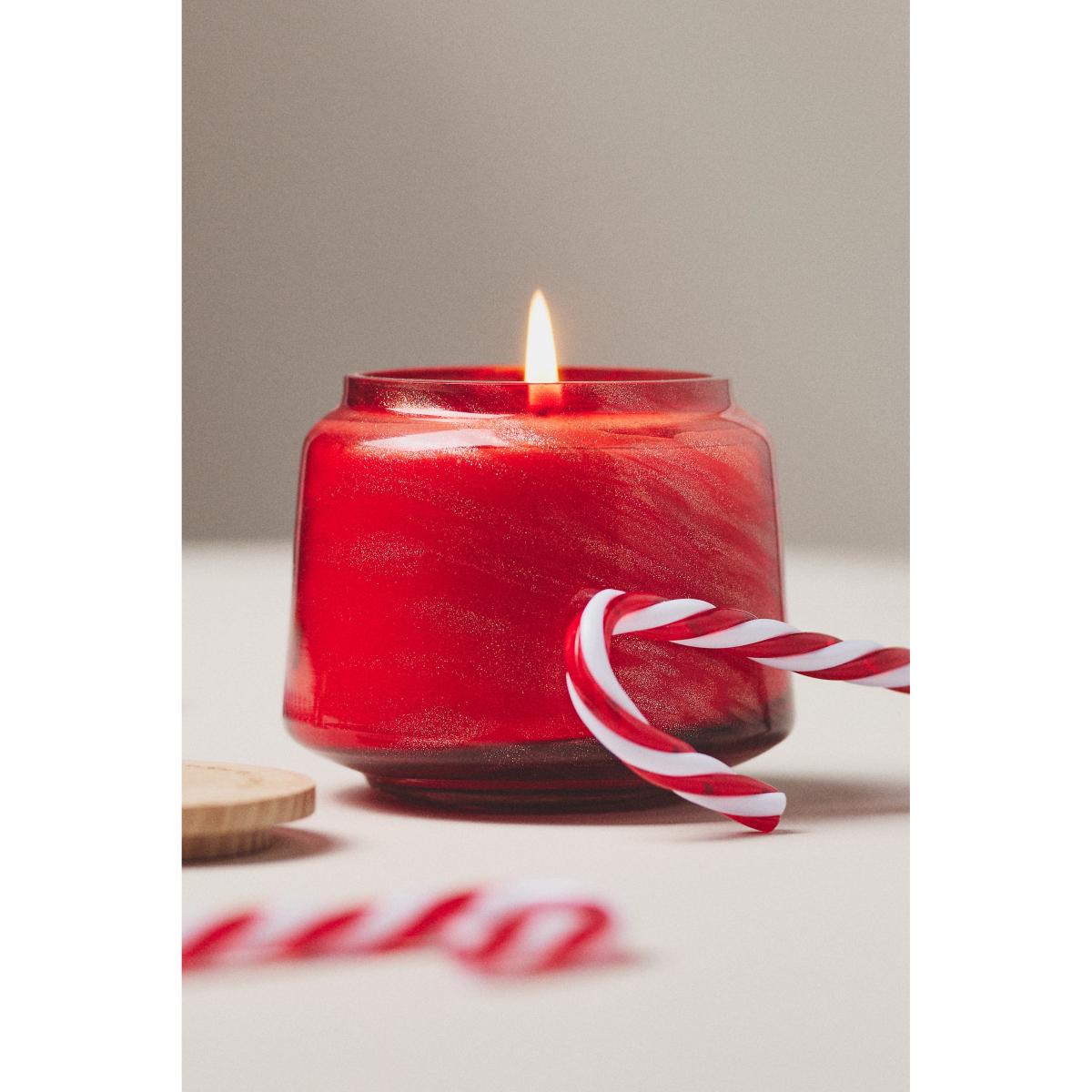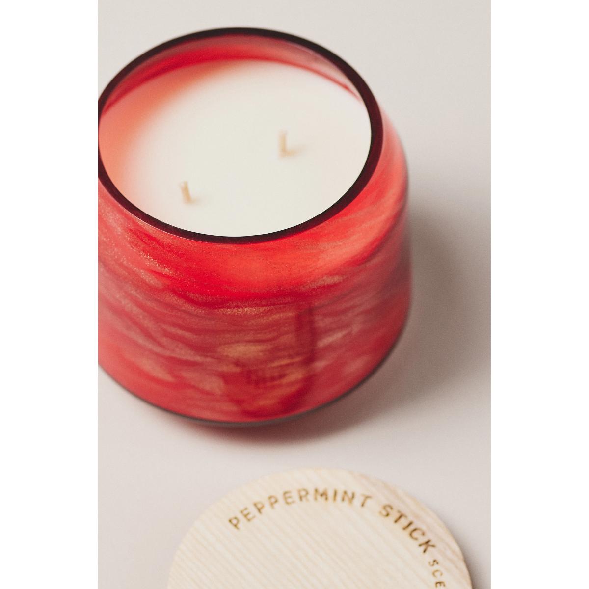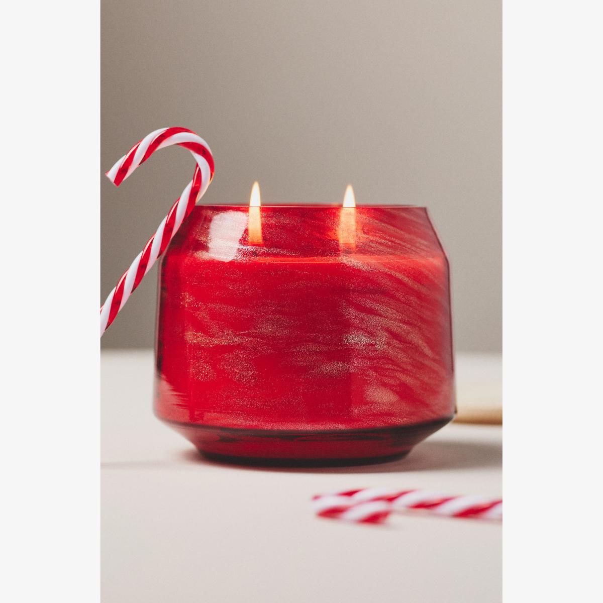 **Exclusively available at Anthropologie** **Peppermint Stick (Gourmand):** The nostalgic allure of old-fashioned candy canes brought to life through frosted peppermint accents swirled with sweet ribbons of pure vanilla sugar. *For the best burn experience, keep the following in mind:* * The first time you light your candle, allow it to burn until the wax pool melts all the way to the edge; for a larger candle, this may take several hours. Wax has "memory," so if it is extinguished with a partial pool, that will prevent a full, even pool from forming in the future. * Trim your wick each time you light the candle, removing any "bloom" from the previous burn. We recommend lighting a wick that is 1/4-1/2" in length. * Ensure that your candle is placed on a heat-safe surface. * Do not allow wick trimmings, dust, or other materials to accumulate in the wax pool. * To ensure safety and longevity, be sure to check the bottom of your candle for additional instructions, including details on when to discontinue use. * 45-hour burn time * Hand-poured plant-based wax blend; fil-tec candle wick * Glass vessel with wood lid * Imported