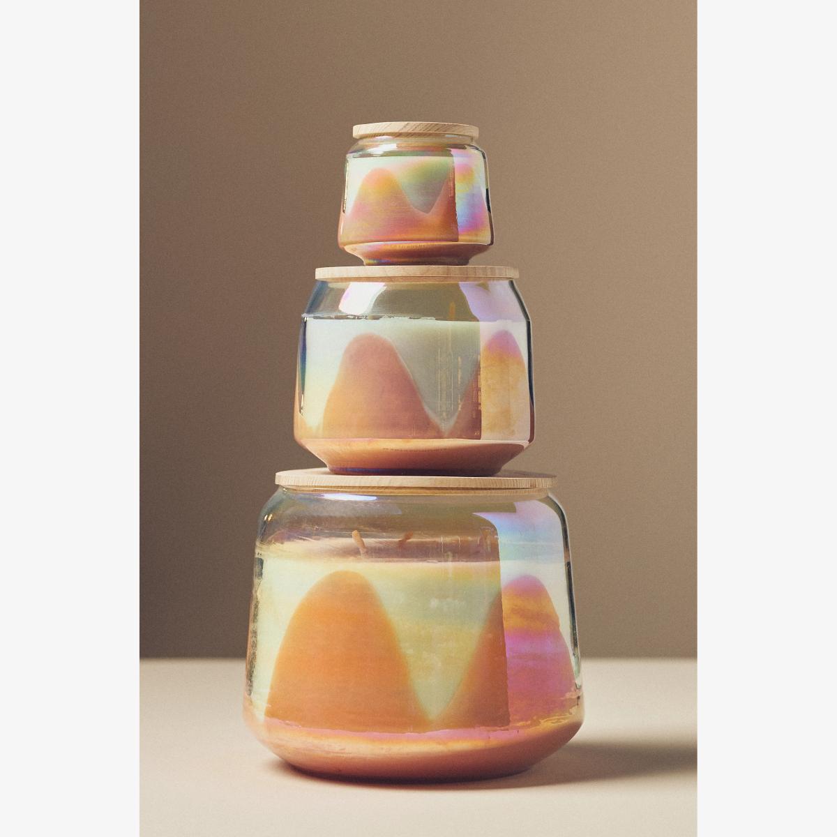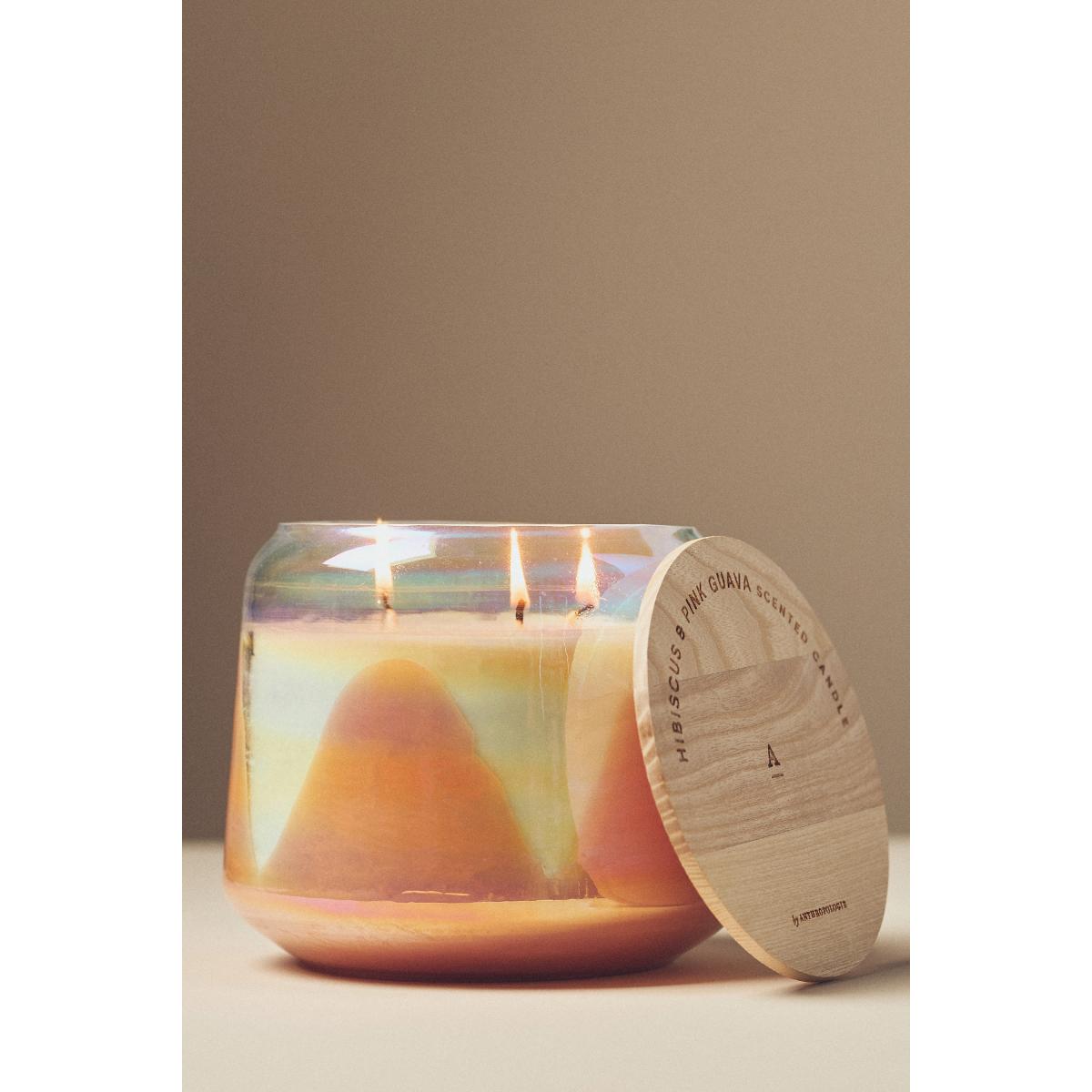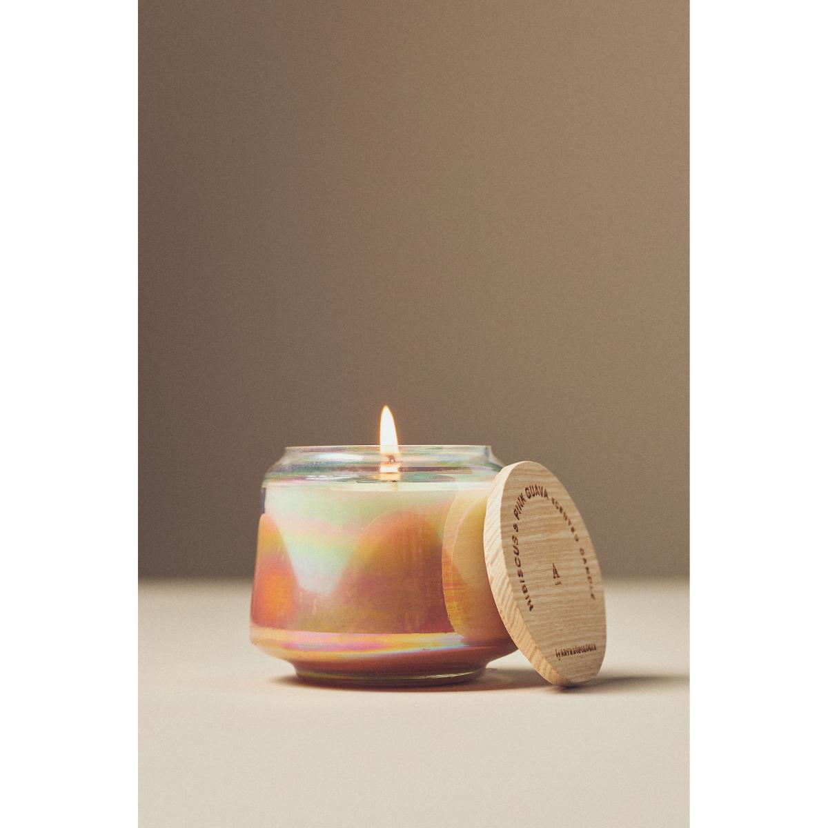 Exclusively available at Anthropologie Not only does it waft a signature fragrance throughout the home, but our beautifully shaped, handpainted glass jars lend a stunning, decorative touch to every interior. Hibiscus & Pink Guava (Fruity Fresh):A tropical breeze of sun-ripened pineapple and passion fruit swirls with blooming hibiscus, pink guava, and juicy island nectars. For the best burn experience, keep the following in mind: The first time you light your candle, allow it to burn until the wax pool melts all the way to the edge; for a larger candle, this may take several hours. Wax has " memory," so if it is extinguished with a partial pool, that will prevent a full, even pool from forming in the future. Trim your wick each time you light the candle, removing any " bloom" from the previous burn. We recommend lighting a wick that is 1/4-1/2" in length. Ensure that your candle is placed on a heat-safe surface. Do not allow wick trimmings, dust, or other materials to accumulate in the wax pool. To ensure safety and longevity, be sure to check the bottom of your candle for additional instructions, including details on when to discontinue use. The Gather Candle by Anthropologie: Hibiscus & Pink Guava in Orange Size: Medium