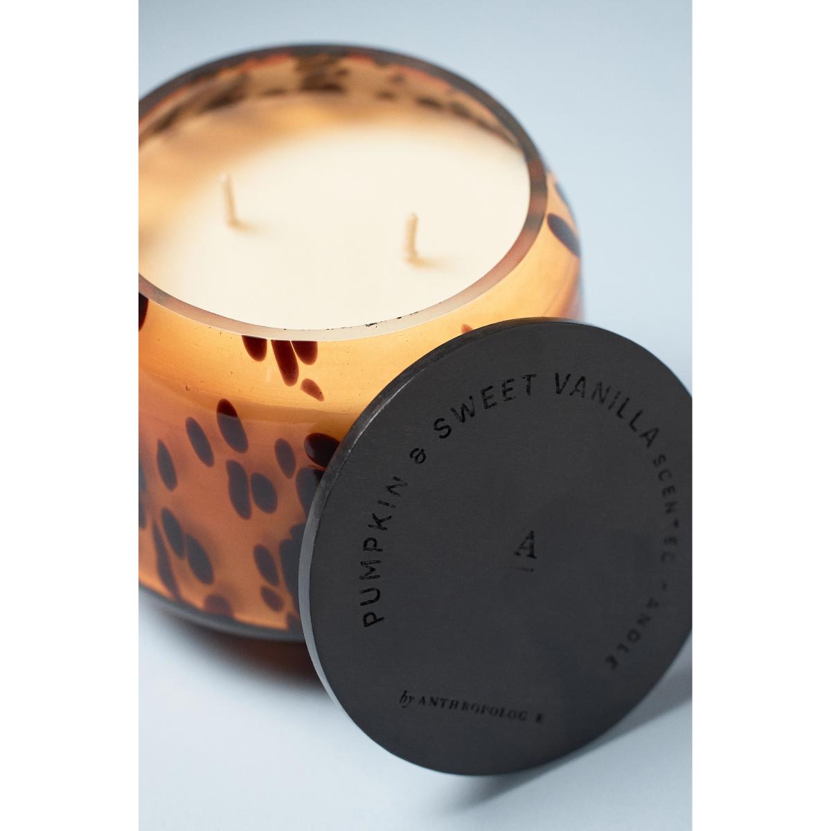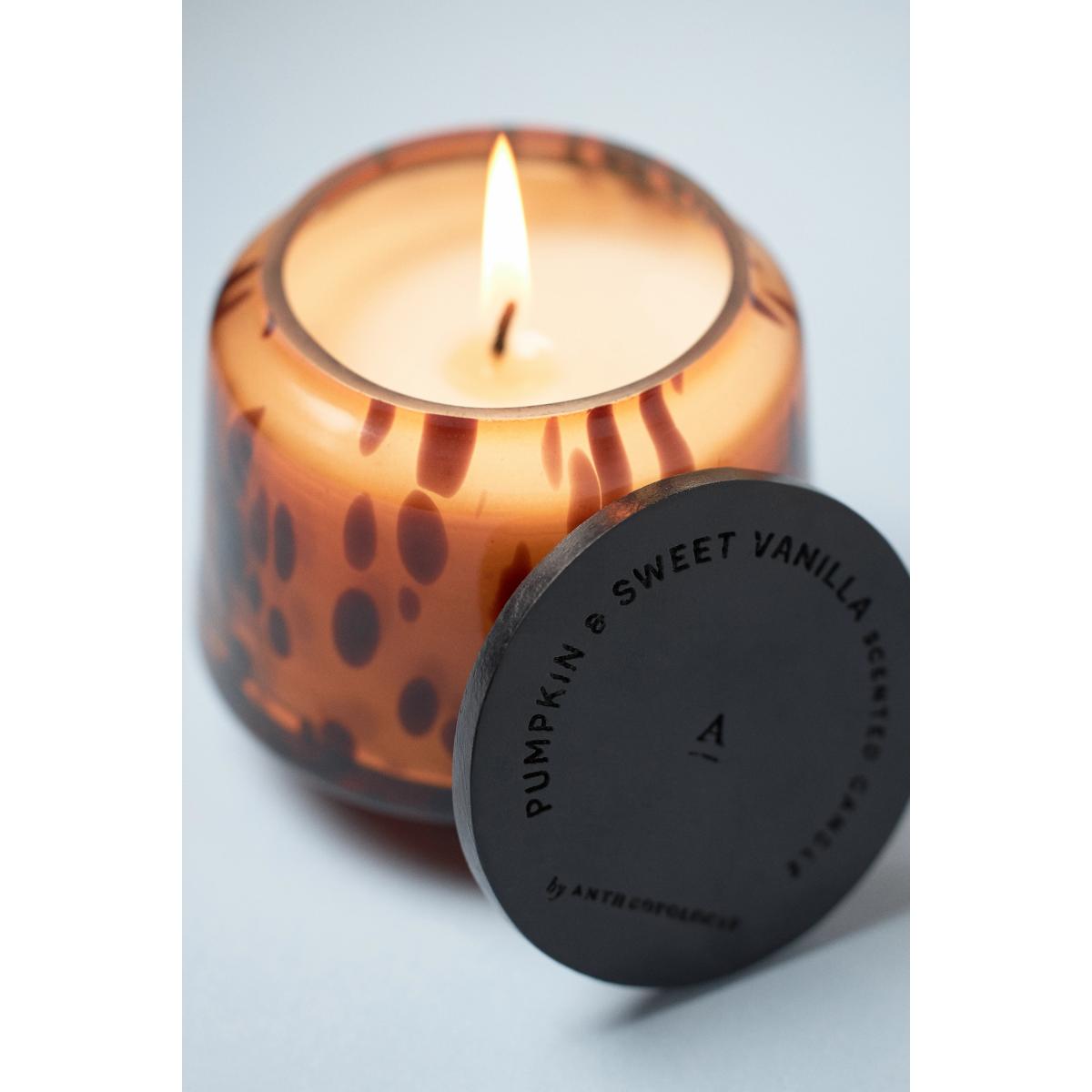 **Only at Anthropologie** Not only does it waft a signature fragrance throughout the home, but our beautifully shaped, cheena glass jars lend a stunning, decorative touch to every interior. **Pumpkin & Sweet Vanilla (Gourmand Spice):** Rich pumpkin soufflé is blended with browned butter, toasted nutmeg, and cinnamon then swirled with sweet vanilla cream and brown sugar. *For the best burn experience, keep the following in mind:* * The first time you light your candle, allow it to burn until the wax pool melts all the way to the edge; for a larger candle, this may take several hours. Wax has "memory," so if it is extinguished with a partial pool, that will prevent a full, even pool from forming in the future. * Trim your wick each time you light the candle, removing any "bloom" from the previous burn. We recommend lighting a wick that is 1/4-1/2" in length. * Ensure that your candle is placed on a heat-safe surface. * Do not allow wick trimmings, dust, or other materials to accumulate in the wax pool. * To ensure safety and longevity, be sure to check the bottom of your candle for additional instructions, including details on when to discontinue use. * Mini: 28-hour burn time * Regular: 50-hour burn time * Hand-poured plant-based wax blend; fil-tec candle wick * Cheena glass vessel with wooden lid * Imported