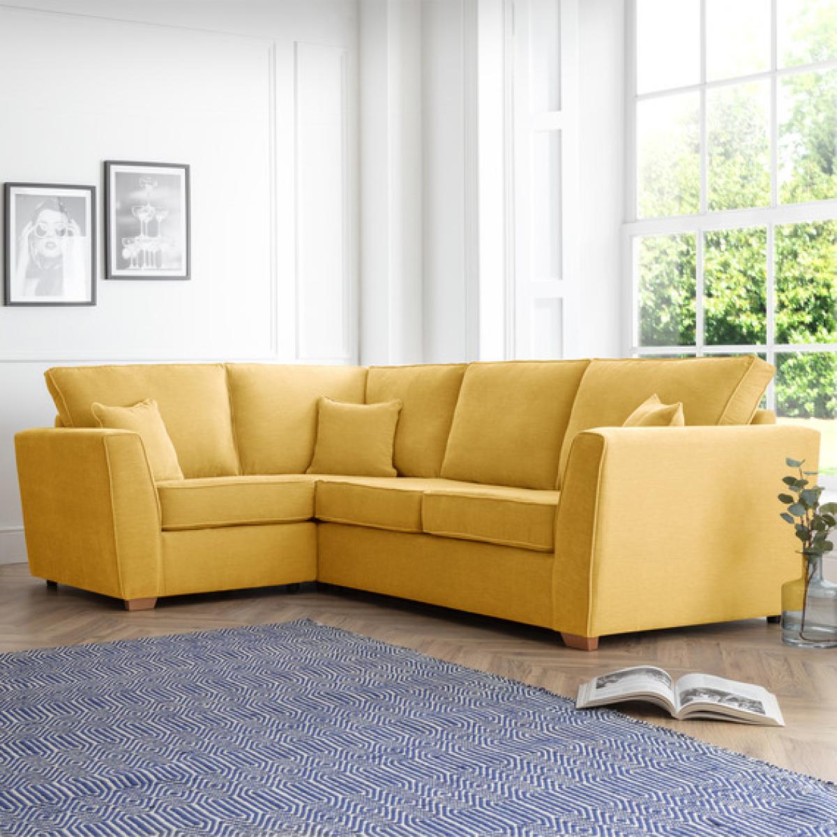 The gold corner sofa is a striking choice that instantly elevates the look of any living space. I love how the warm hue adds a touch of luxury and complements both modern and traditional interiors. It works particularly well in neutral colour schemes or with contrasting dark accents to make the gold pop. To style it effectively, consider soft, understated cushions and throws to balance the boldness of the fabric, while maintaining a cosy and inviting feel. Practical tip: position it near natural light to enhance the richness of the colour, and pair it with minimalistic tables and accessories for a refined, contemporary aesthetic.