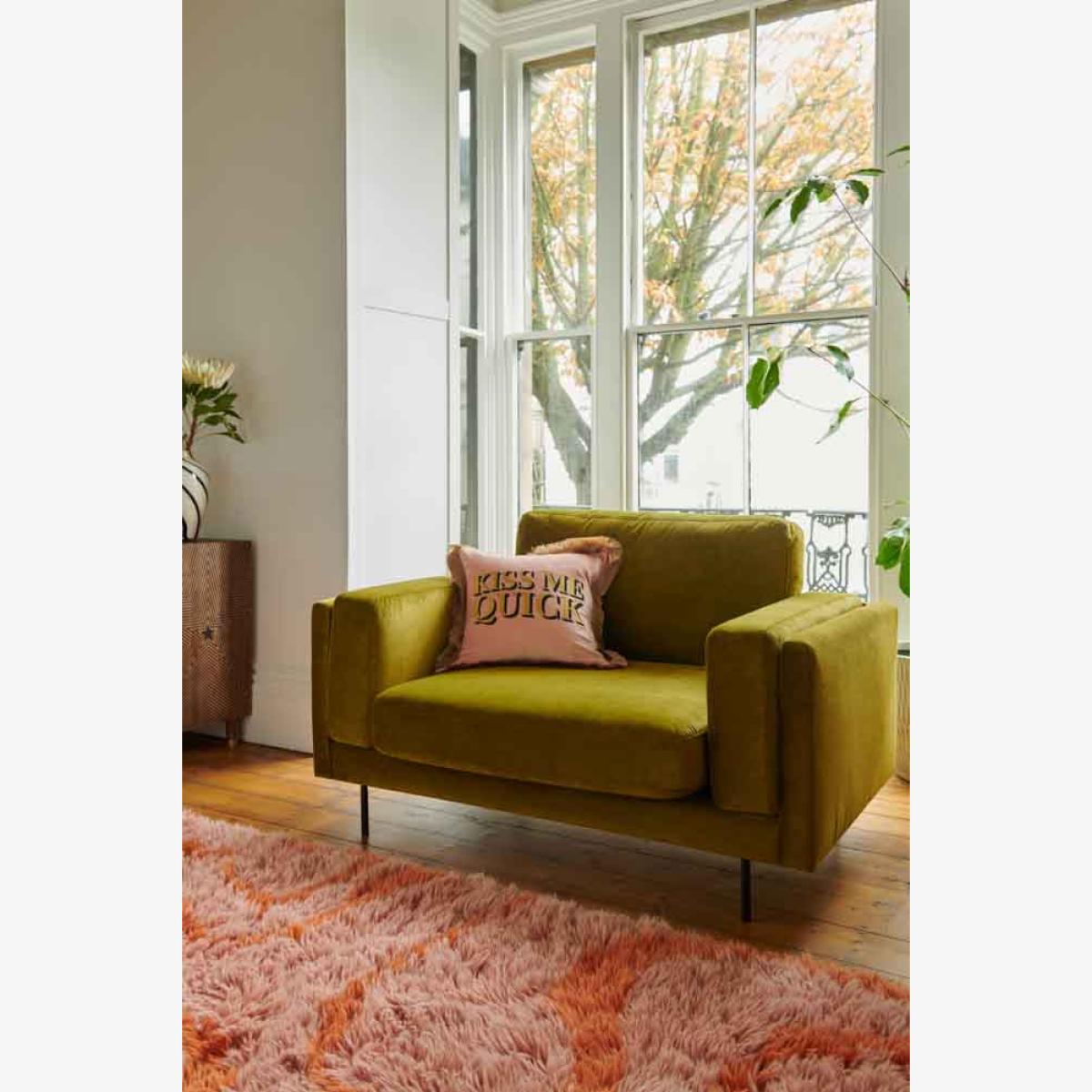 This stylish love seat is the perfect shape for snuggling – the high, firm back and arms make this roomy for one or cosy for two. The modern mustard tones add warmth and colour to your living room that can be dressed up or down to suit your taste - add cushions and throws in block colours and clashing patterns to add texture and richness, or just enjoy the simplicity. Your home, your rules! - The Grace Love Seat In Luxe Needlecord Velvet Vintage Green- Measures: H87cm x W140cm x D99cm So why buy a sofa from Rockett St George? Well, here's what makes our sofas unique... - Our 10-year guarantee. A high-ticket item like a sofa is an investment piece, and we want you to enjoy this from the moment you buy it. A 10-year guarantee gives you the peace of mind you need. - The comfort factor. Our sofas feature supportive sprung bases, high-density seat foam and deep-filled back cushions to ensure long-lasting comfort.- A personalised finish. Our extensive variety of swatch and size options are available to ensure your sofa is as unique as you are.- Speedy delivery. You'll be sat on your brand new sofa within 7 days*!- Delivered to your door. In fact, we'll go a step further - we'll deliver to the room of your choice!