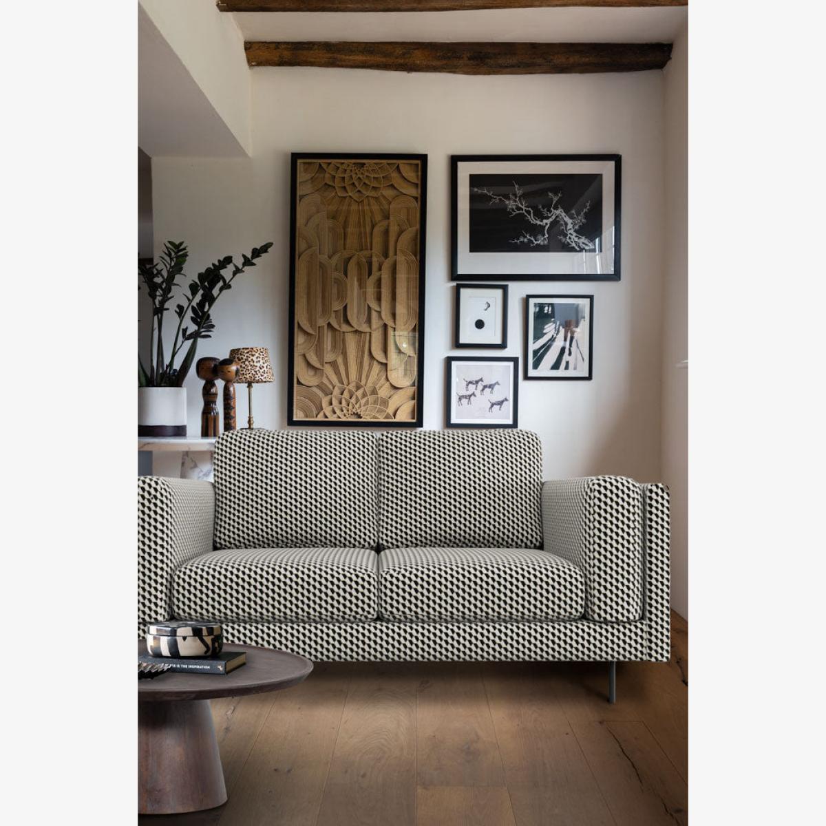 Mid-century in design and sporting a bold geometric pattern, this stunning sofa is perfect as a focal point wherever you style it in your home. Featuring a subtle but striking pattern that brings a ‘70s vibe to the party, the clean, sleek frame of this piece saves it from being overtly maximalist, although fans of the ‘more is more’ camp can add cushions and throws in bold block colours or clashing prints to add quirky and eclectic overtones. The straight lines of this sofa frame marry perfectly with the teeny tiny legs that characterise the era, while the neat and tidy fit of the corded velvet will please those who like order amongst the chaos! This piece combines elegance with rock star chic, and is all the better for it – this is Rockett St George at its bold and fearless best. Magic. - The Grace Medium Sofa In Geo Glam Woven Sand & Black - Measures: H87cm x W190cm x D99cm So why buy a sofa from Rockett St George? Well, here's what makes our sofas unique... - Our 10-year guarantee. A high-ticket item like a sofa is an investment piece, and we want you to enjoy this from the moment you buy it. A 10-year guarantee gives you the peace of mind you need. - The comfort factor. Our sofas feature supportive sprung bases, high-density seat foam and deep-filled back cushions to ensure long-lasting comfort.- A personalised finish. Our extensive variety of swatch and size options are available to ensure your sofa is as unique as you are.- Speedy delivery. You'll be sat on your brand new sofa within 7 days*!- Delivered to your door. In fact, we'll go a step further - we'll deliver to the room of your choice! * Subject to availability