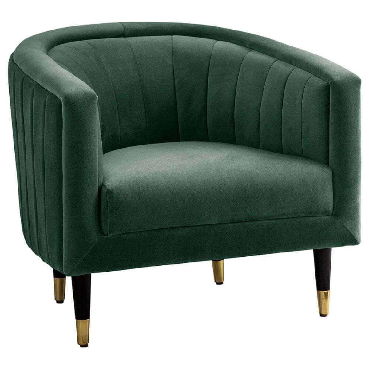 The Green Velvet tub chair is a luxurious easy chair with panels of soft and cushy velvet set around a deep cushioned seat.  Definitely a chair not to hideaway in a corner but one to show its delightful detail off to the max.