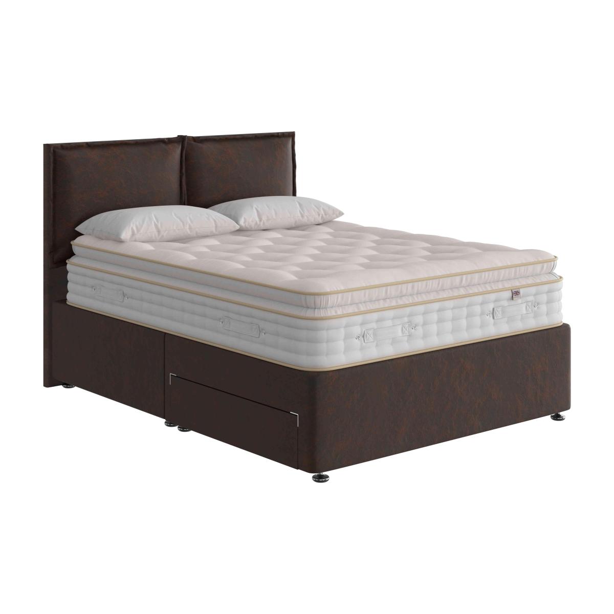 This stylish divan set promises real comfort thanks to the pillow top mattress with 3,000 pocket springs in king size. Customise it with your choice of fabric and storage drawer arrangement. Why you'll love it This stylish divan set comes complete with a sprung pillow top mattress. Handcrafted using traditional techniques. Mattress has 3,000 individually pocketed springs in king size. All-natural, chemical-free cotton and Hampshire wool fillings. The cushioning pillow top provides a luxurious sleeping surface. Ventilated border has 2 rows of stitching for edge support. Handles make rotating the mattress easier. Upholstered divan base comes in a huge range of sophisticated colours. With optional storage drawers in a choice of configurations. Made in the UK and exclusive to Furniture Village. This divan set is part of the Handmade Bed Company Boutique 3000 Pillow Top range. What you need to know Headboard shown is the Handmade Bed Company Standford headboard, available separately. Mattress type: Pocket spring. Depth: 32 cm. Firmness: Medium. Springs: 3,000 in king size. Pillow top:Yes. Fillings: Chemical-free cotton and Hampshire wool. Cover: Chemical-free polyester and viscose. Requires turning: No. Base type: Platform-top with optional storage drawers. Sizes: Single, double, king, super king. Mattress care:Air for 4 hours before using to remove any odour. Allow at least 4 hours for springs to settle and for mattress to attain its full size. Indentations caused by settlement of fillings or body weight are normal and are not considered defects. If used on a slatted bed frame, the space between slats must be no wider than 7.5 cm. Spaces wider than this may cause excess dipping of the mattress and invalidate the guarantee. Always use a mattress protector. Rotate regularly. Divan base care: Clean upholstery weekly using a soft brush or vacuum with the curtain attachment. Professional cleaning advised for oil- and grease-based stains. Some fabrics can show wear on areas of more use or in direct sunlight.