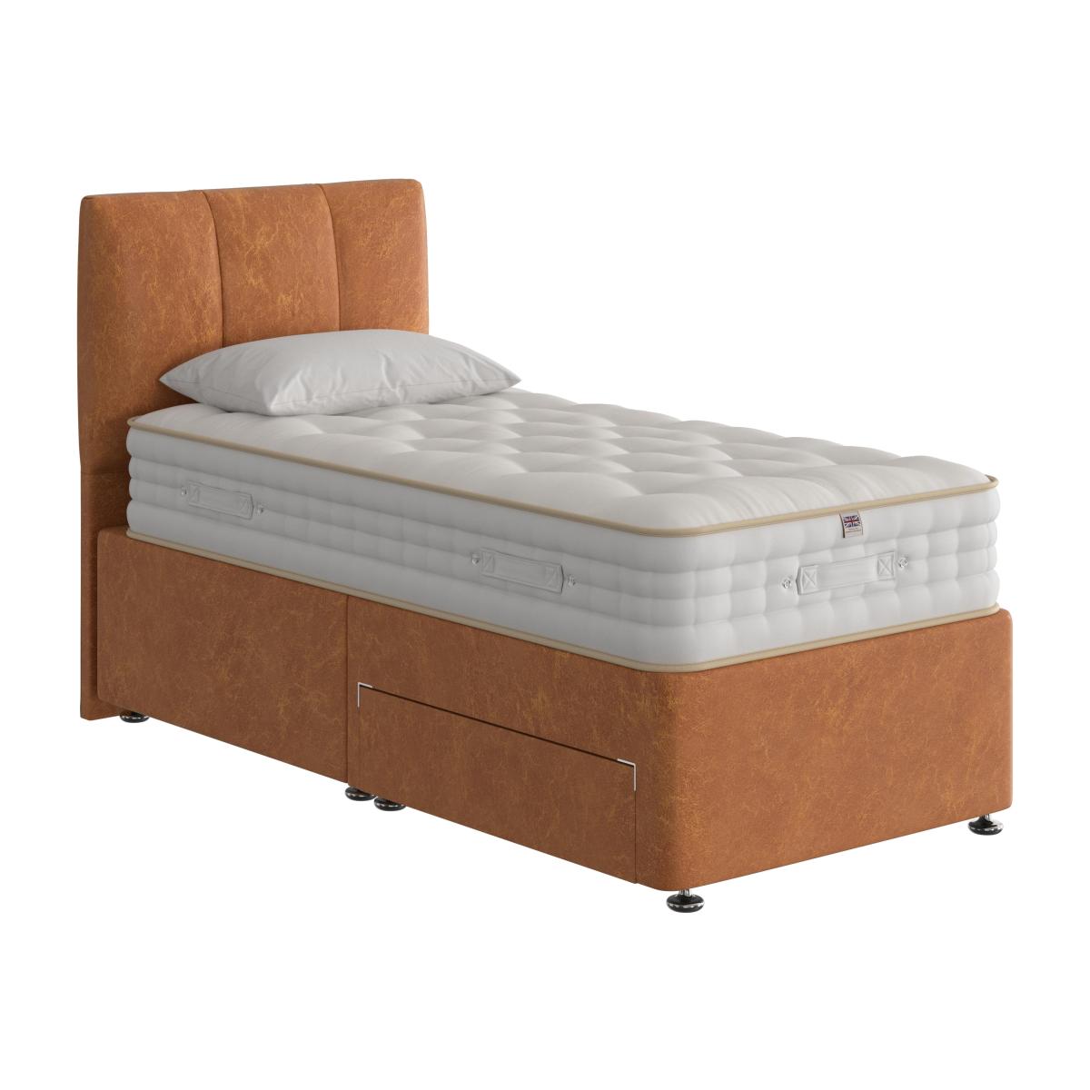 Sleep in style, sleep in comfort. This beautiful divan set includes a superb all-natural pocket spring mattress atop a divan base in your choice of fabric with optional storage. Why you'll love it A top-of-the-range mattress completes this exceptional handmade divan set. Handcrafted using traditional techniques. Mattress has 4,000 individually pocketed springs in king size. All-natural, chemical-free cotton and Hampshire wool fillings. Ventilated border has 2 rows of stitching for edge support. Handles make rotating the mattress easier. Upholstered divan base comes in a huge range of sophisticated colours. With optional storage drawers in a choice of configurations. Made in the UK and exclusive to Furniture Village. This divan set is part of the Handmade Bed Company Boutique 4000 range. What you need to know Headboard shown is the Handmade Bed Company Grasmere headboard, available separately. Mattress type: Pocket spring. Depth: 32 cm. Firmness: Medium. Springs: 4,000 in king size. Pillow top: No. Fillings: Chemical-free cotton and Hampshire wool. Cover: Chemical-free polyester and viscose. Requires turning: No. Base type: Platform-top with optional storage drawers. Sizes: Single, double, king, super king. Mattress care:Air for 4 hours before using to remove any odour. Allow at least 4 hours for springs to settle and for mattress to attain its full size. Indentations caused by settlement of fillings or body weight are normal and are not considered defects. If used on a slatted bed frame, the space between slats must be no wider than 7.5 cm. Spaces wider than this may cause excess dipping of the mattress and invalidate the guarantee. Always use a mattress protector. Rotate regularly. Divan base care: Clean upholstery weekly using a soft brush or vacuum with the curtain attachment. Professional cleaning advised for oil- and grease-based stains. Some fabrics can show wear on areas of more use or in direct sunlight.