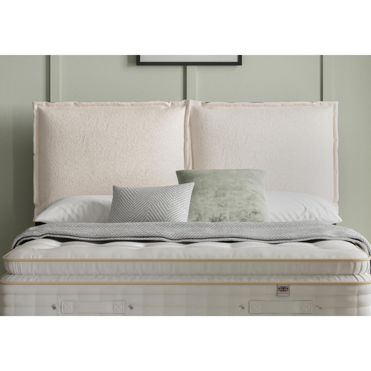 With its two distinct sections and Oxford pillowcase-style border, this cushioned headboard makes a contemporary design statement. Why you'll love it This well-cushioned two-panel headboard is the essence of on-trend style. Modern design meets traditional comfort. This headboard is floor standing – it’s fully upholstered from top to bottom. Designed to pair with divan sets from the Handmade Bed Company. In a wide choice of lovely fabric colours. Available in double, king and super king sizes. Handcrafted in the UK. This headboard is part of the Handmade Bed Company range at Furniture Village. What you need to know Compatible with all standard divan bases. Clean upholstery weekly using a soft brush or vacuum with the curtain attachment. Professional cleaning advised for oil- and grease-based stains.