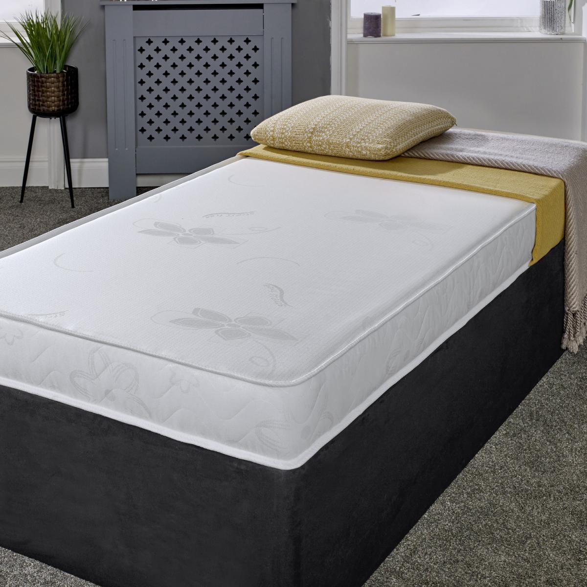 Great for bunk beds, cabin beds, day beds etc etc. Please do check the size of your base before ordering as these will be difficult for you to return. Ideal for situations where a thin mattress is critical.brbr. This is our Haze firmer basic all foam 10cm (4") deep Mattress. It is made from a single 10cm thick piece of Orthopaedic closed cell Reflex foam. Reflex foam has a firmer feel and a faster bounce back compared to memory foam. It has a white wavy design border and a Stress Free top panel. Ideal in situations where mattress height is critical. It is a single sided mattress and you should rotate your mattress regularly to get the best from it.brbr. These are UK made mattresses, produced in our West Yorkshire factory and are fully compliant with all relevant UK fire safety regulations for domestic use.brbr. We compress, vacuum pack and roll these mattresses so that they can be delivered quickly and cheaply to your door. You will need to allow a few hours after opening for your mattress to regain its shape and size. As these are produced with fresh, new foam, you may need to air in a dry, well ventilated room, for up to 24 hours prior to use.
