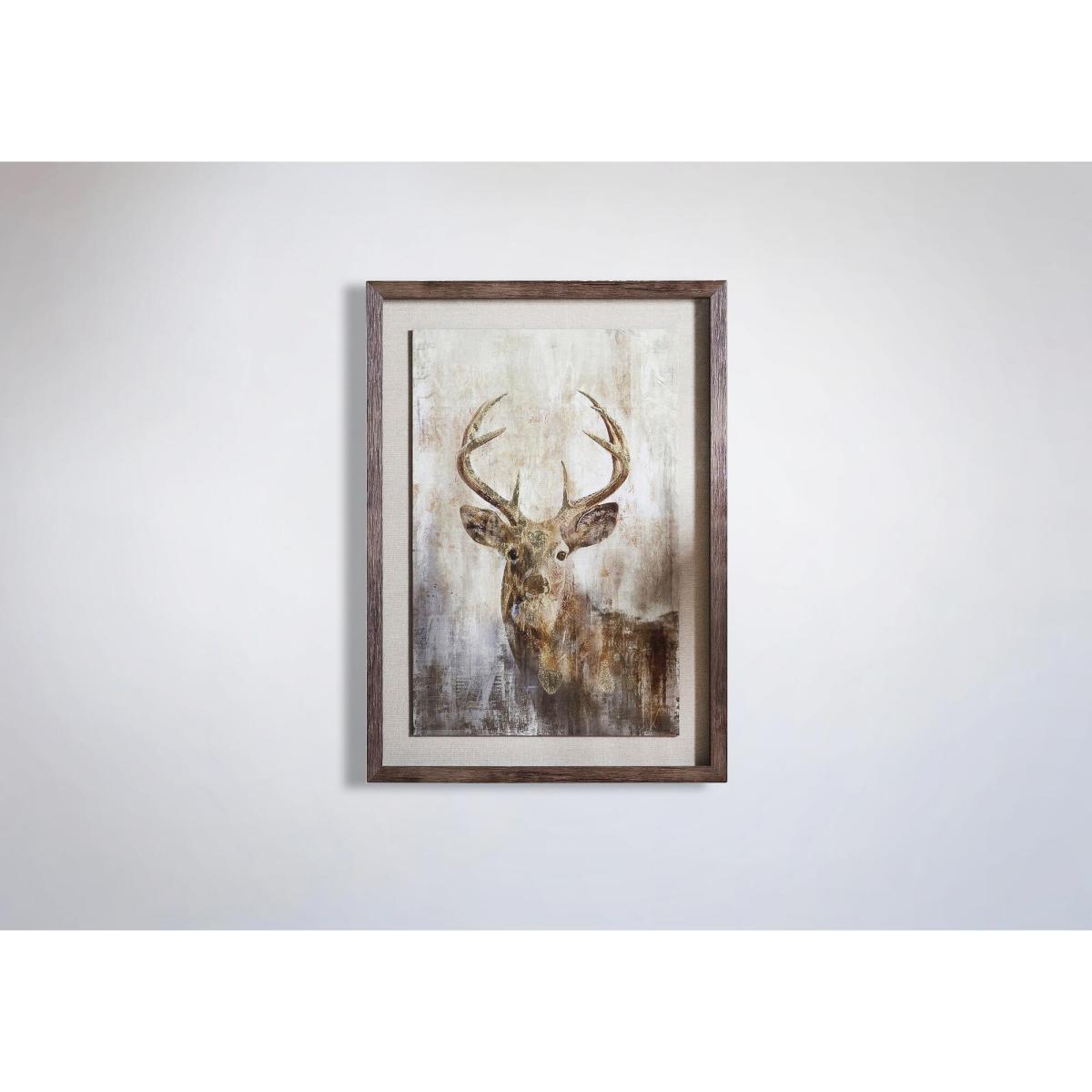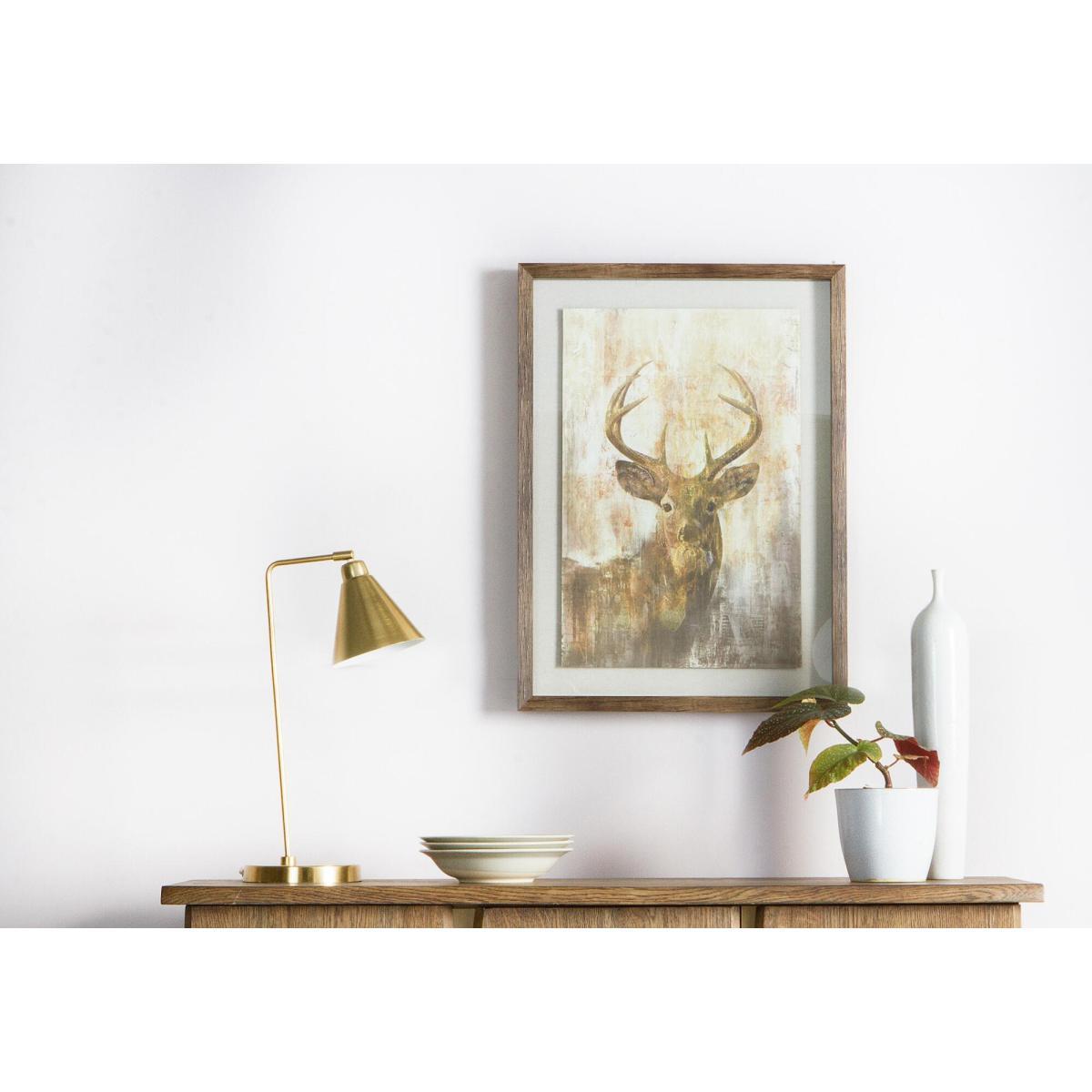 Let the charm and beauty of the countryside into your home with The Highlands framed print. Surrounded by a large, rustic frame with a wooden effect, this large print is a focal point in its own right due to the strong presence of its main character, a majestic deer painted in bold, earthy hues. The rustic appeal of The Highlands takes us back to comforting afternoons spent in the countryside, roasting chestnuts by a roaring fire. Place it above a mantelpiece, combined with a few vintage hardback books to create a country-style theme that is bold, eye-catching and stylish.