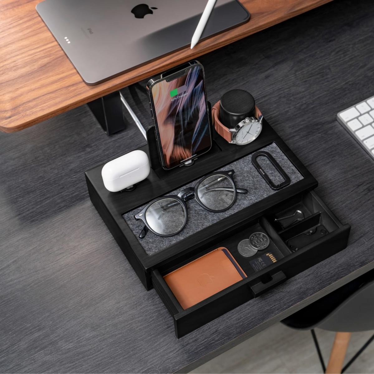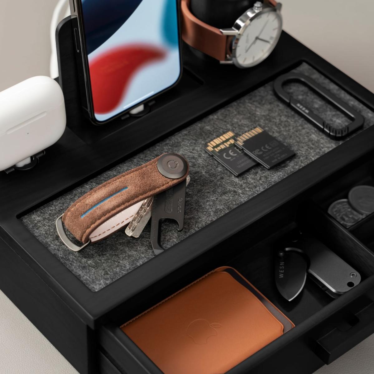 Having fully charged devices that are always ready to use is key to winning the day. We’ve combined the hallmarks of our product range - minimalist design that enhances the environment the product is in - with the functionality of a docking station, presenting to you The Hub. The Hub is the center of your activity. It’s where you keep all your essential items that are always fully charged and ready to go. Accessories organized in one place Charging your smartphone and earbuds made easy Nightstand or desk clutter free Charging cables hidden away Assemble in minutes