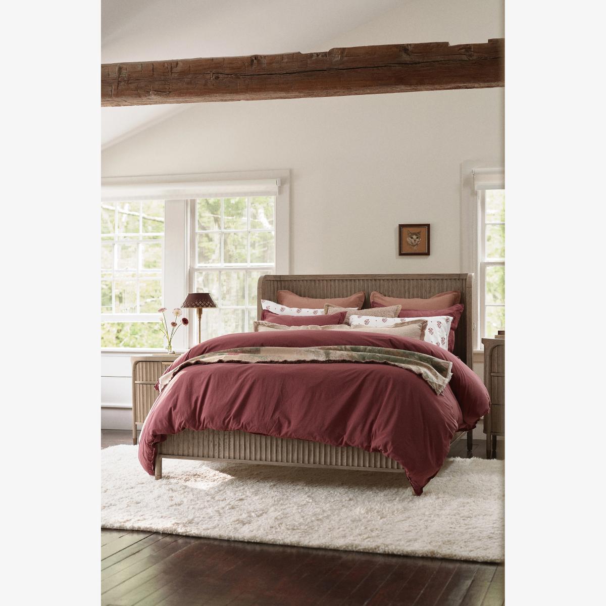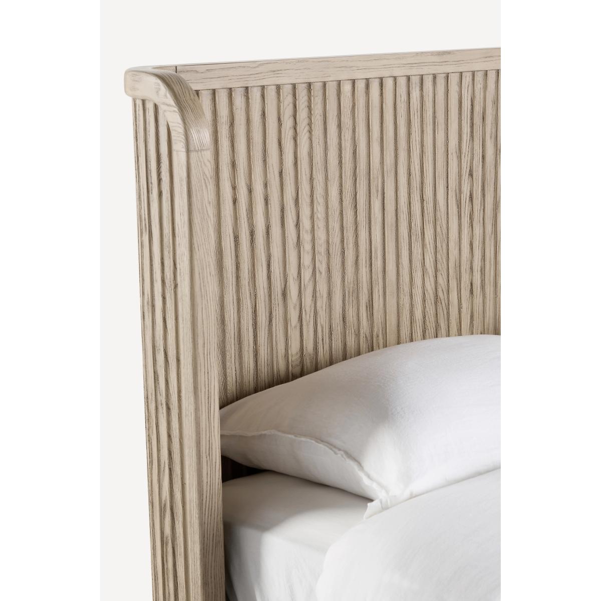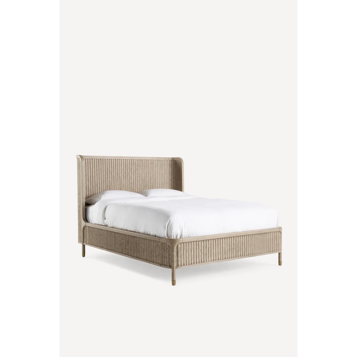 Featuring fluted-wood detailing and rounded corners, the Isla Bed makes a stunning statement in any bedroom. * Ash wood bed reinforced with engineered hardwood with an okoume veneer finish * Steel hardware * Wooden slat support system; does not require a box spring * Wipe clean with soft cloth; avoid using chemical cleaners * Easily assembled upon delivery * Imported
