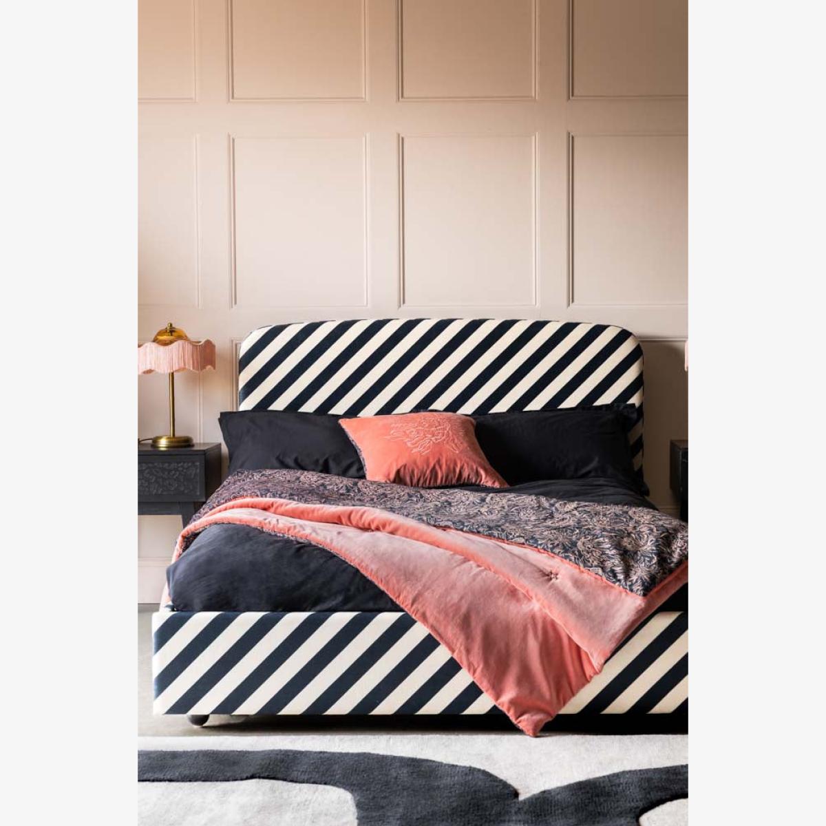 Meet the contemporary bed that knows how to steal the show and refuses to fade into the background. Draped in Studio Stripe Velvet Sand & Black, it’s bold, it’s sassy, and it’s here to make a serious statement within your bedroom furniture. With its smooth, curved headboard and all-over striped upholstery, this bed’s got a rockstar attitude with a side of luxury. It’s just one of those pieces that draws the eye. Available in double and king size, because fabulous comes in options. So, whether you’re stretching out solo or sharing, The Jagger Bed in Studio Stripe Velvet Sand & Black has got you and your bedroom décor covered. - The Jagger Bed in Studio Stripe Velvet Sand & Black - Available in 2 Sizes - Measures: Double - H114cm x W144cm x D204cm, King - H114cm x W159cm x D212cm - Material: 100% Polyester
