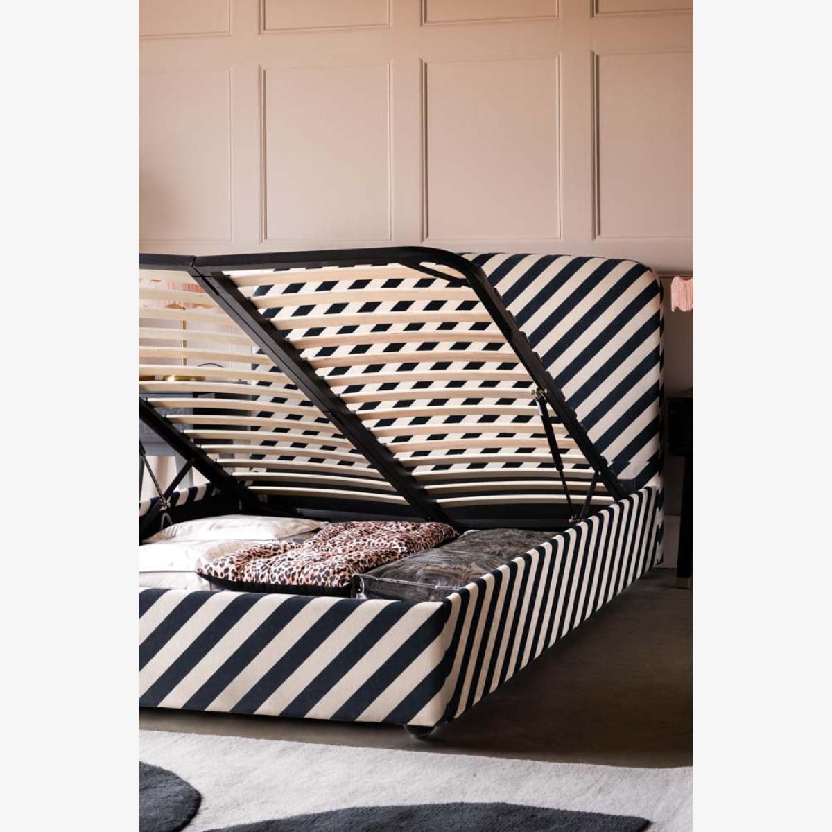 Introducing The Jagger Ottoman Bed In Studio Stripe Velvet Sand & Black – a bold, beautiful, stripe-covered bed, but with a sneaky little secret… storage! Yep, lift that mattress and you’ve got a whole cavern of space underneath. Out of sight, out of mind. Wrapped in that knockout Studio Stripe Velvet Sand & Black, this storage bed serves major rockstar vibes with its curvy headboard and statement stripes. Basically, it’s a bed with storage and personality – who says you can't have both? Available in double and king size, so it works either way – whether you’re sprawling solo or sharing. Bedroom envy incoming. - The Jagger Ottoman Bed in Studio Stripe Velvet Sand & Black - Available in 2 Sizes - Measures: Double - H114cm x W144cm x D204cm, King - H114cm x W159cm x D212cm - Material: 100% Polyester