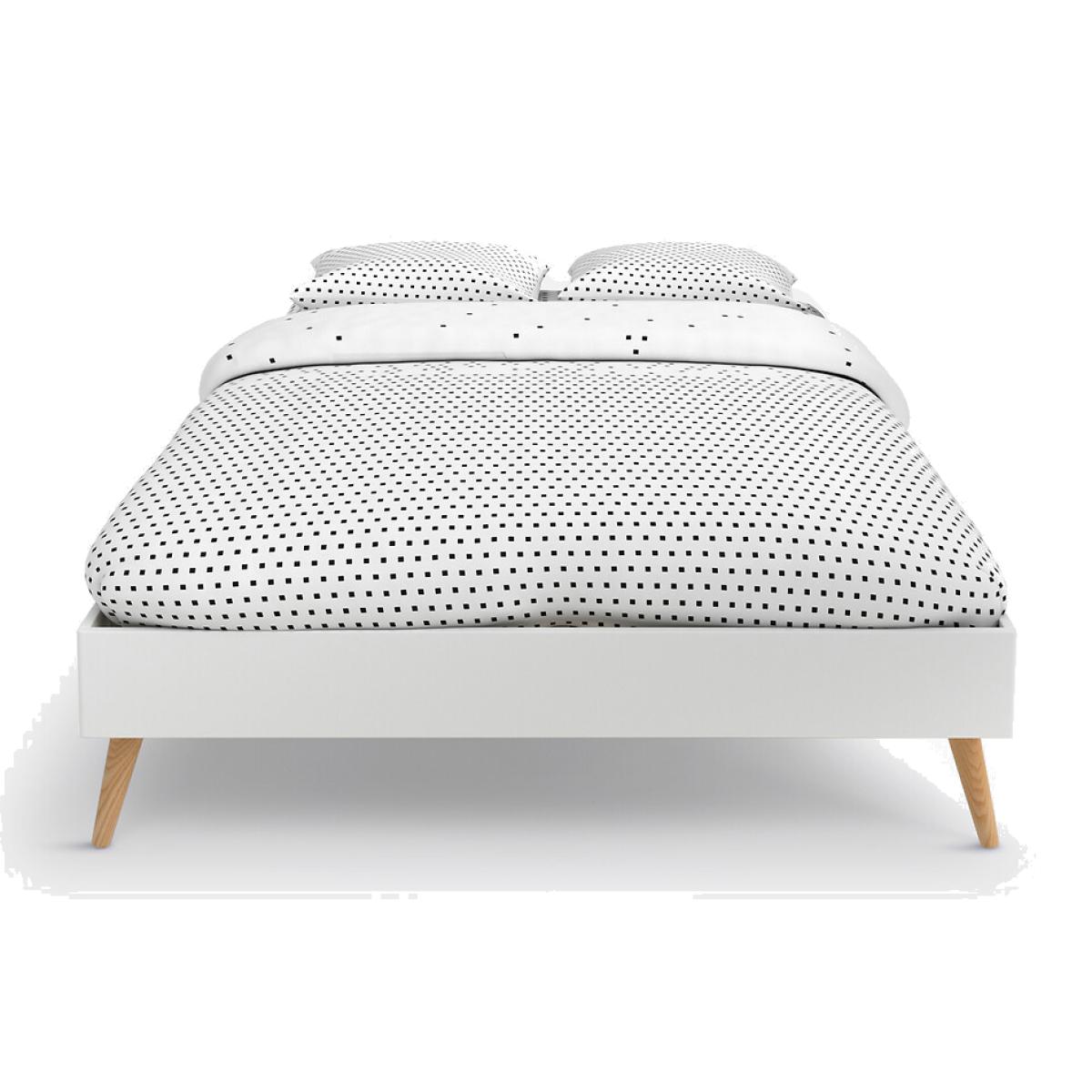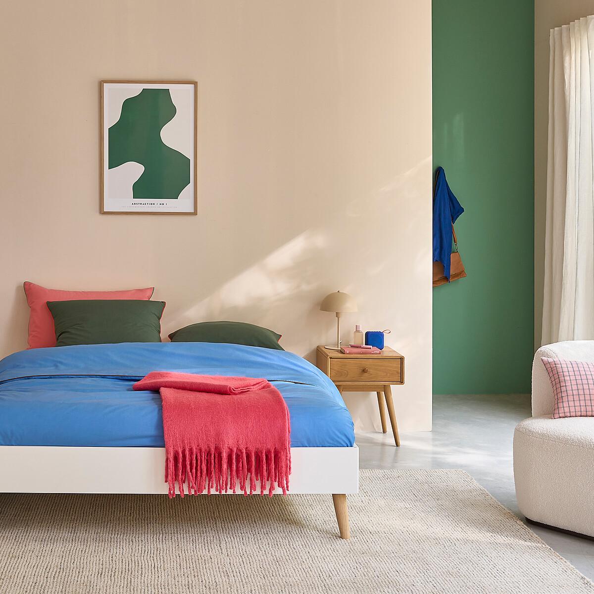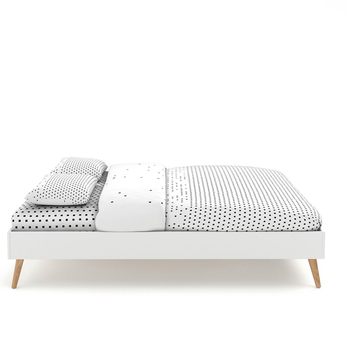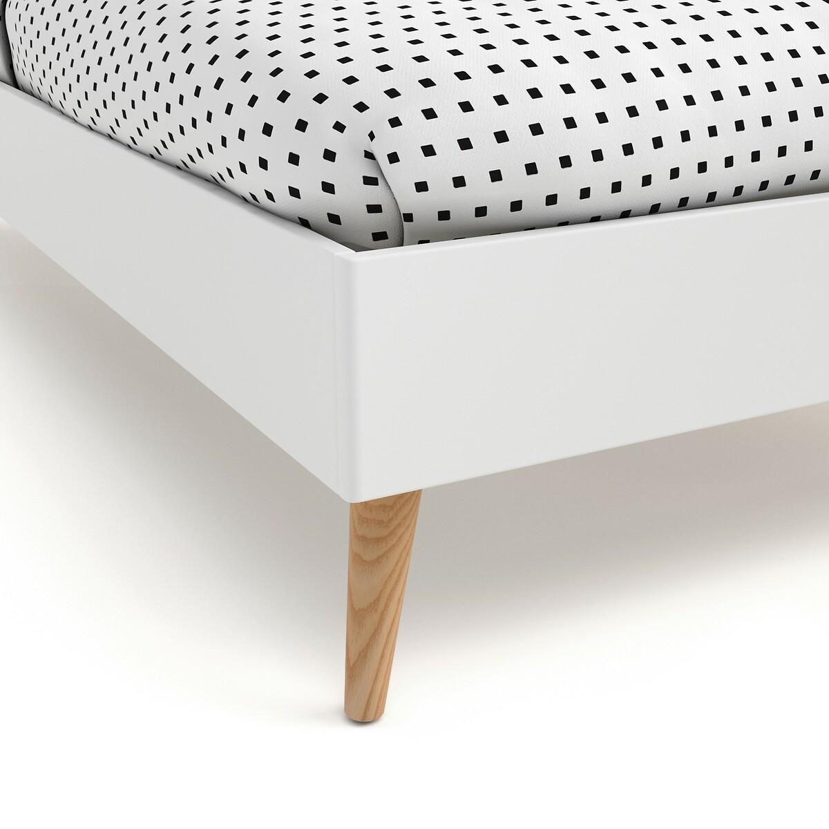 The Jimi bed. Its sleek and modern style matches all interiors.. Designed by La Redoute Intérieurs. Product Details • Lacquered MDF with acrylic finish (water-based paint without solvent) • Tapered legs in solid rubberwood with acrylic varnish finish • Central bar and reinforcing feet in raw solid pine • Integrated plywood slatted base • To move your bed, we advise you to lift it and not push or pull it. Dimensions Overall Size 140 (Double) • Width: 143.8cm • Height: 35.6cm • Length: 193.6cm • Height available under the bed: 18.6cm • Weight: 37kg. Size 160 (King) • Width: 163.8cm • Height: 35.7cm • Length: 203.6cm • Height available under the bed: 18.6cm • Weight: 41kg • Assembly required. • WOOD FROM MORE SUSTAINABLY MANAGED FORESTS AND CONTROLLED SOURCES. FSC® Mix wood contains at least 70% FSC® certified and/or recycled wood, the remainder being FSC® controlled wood. Dimensions and weight of parcel:1 parcel. Double SizeL20. 0 x D54 x H9.6cm, 40kg. King SizeL21. 6 x D54 x H9.6cm, 45kg