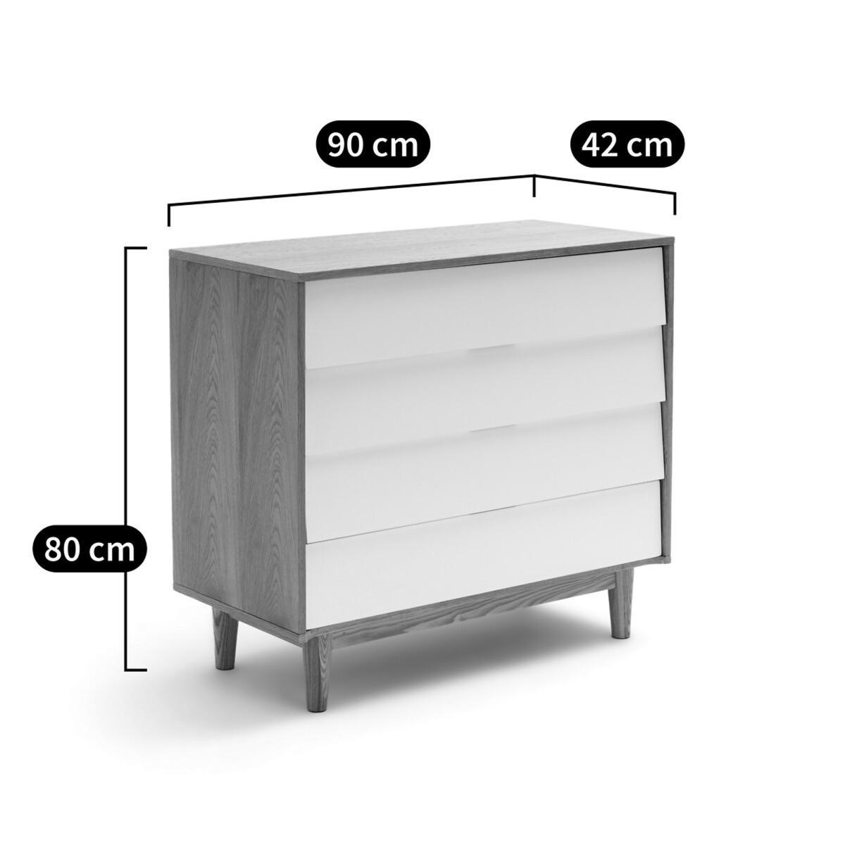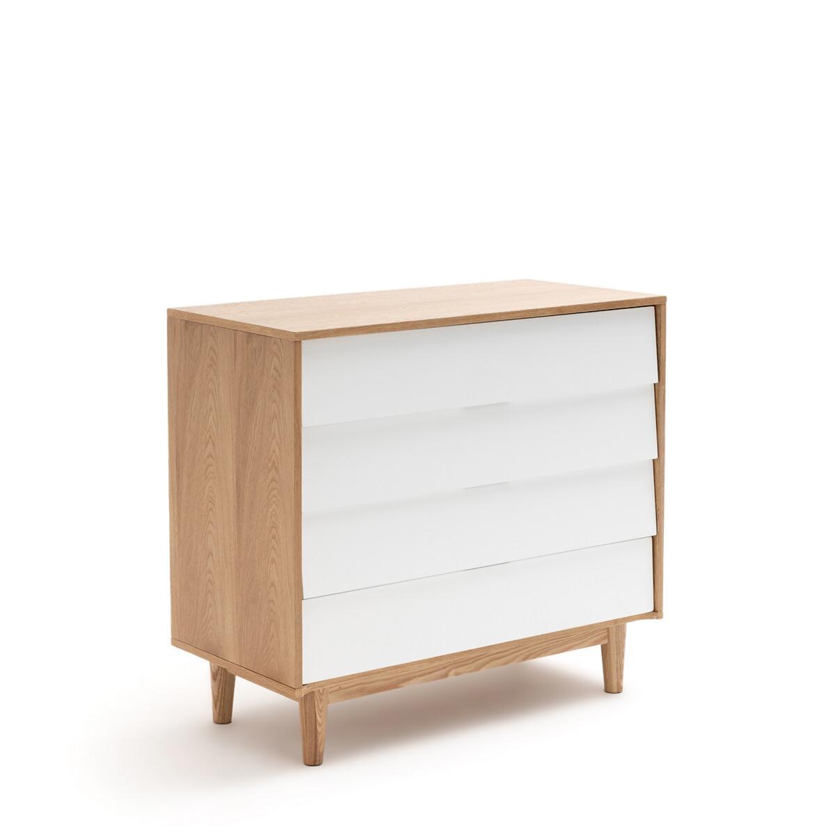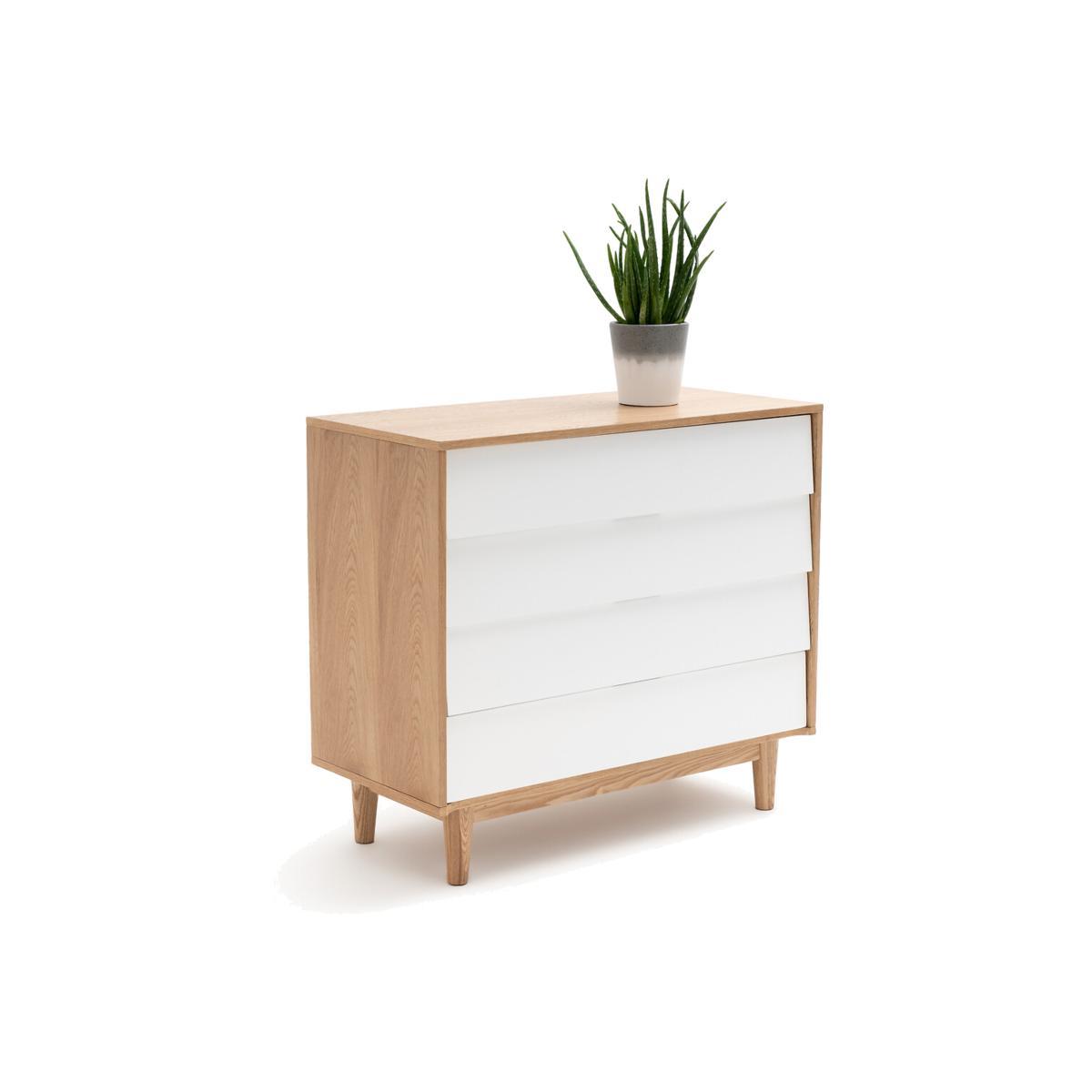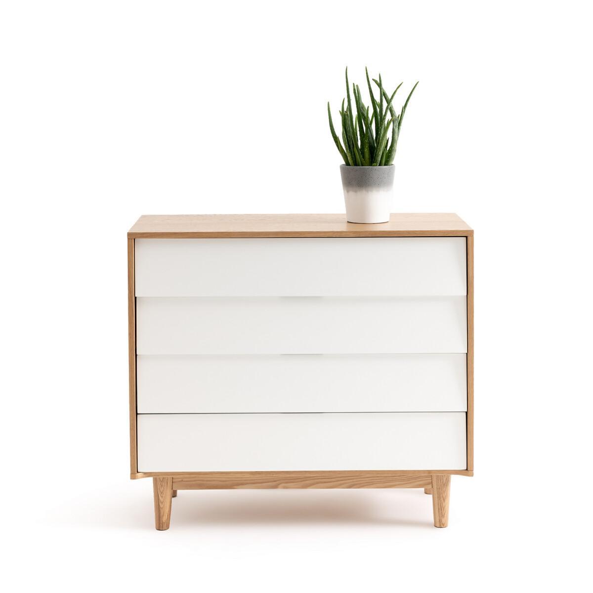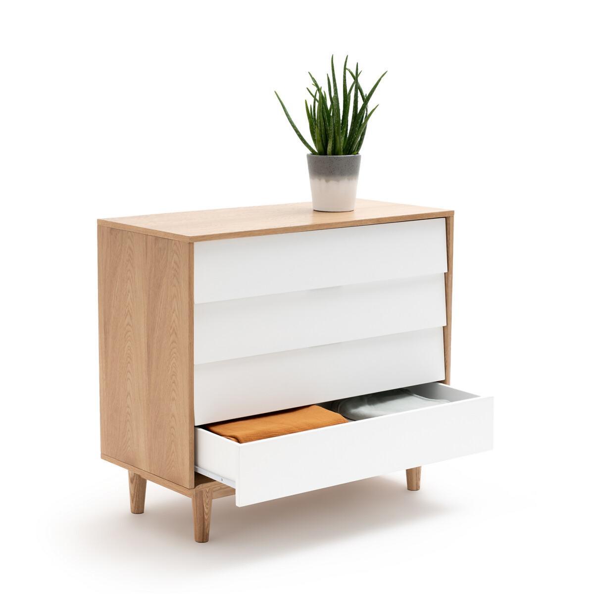 This chest of drawers is perfect for storing clothes or bedding and will add vintage style to your bedroom with its combination of light and white wood and its 1950s-style tapered legs.
