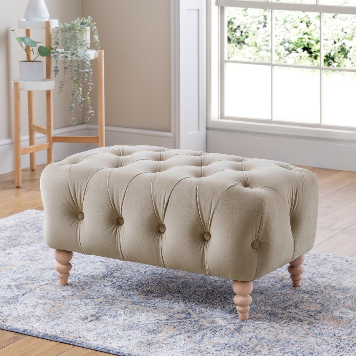 I love this little footstool because of its versatile, understated design and plush tufted finish. It works particularly well in both modern and traditional interiors, complementing neutral palettes or adding warmth to more colourful schemes. The Putty colour is a great neutral that pairs easily with many colour combinations. Practical styling tips include using it as extra seating in a living room or as a cosy footrest in a bedroom reading nook. It can also serve as a side table when topped with a tray for drinks or decorative accessories. Its compact size and soft, inviting texture make it a functional yet stylish addition to any lounge or bedroom setup.