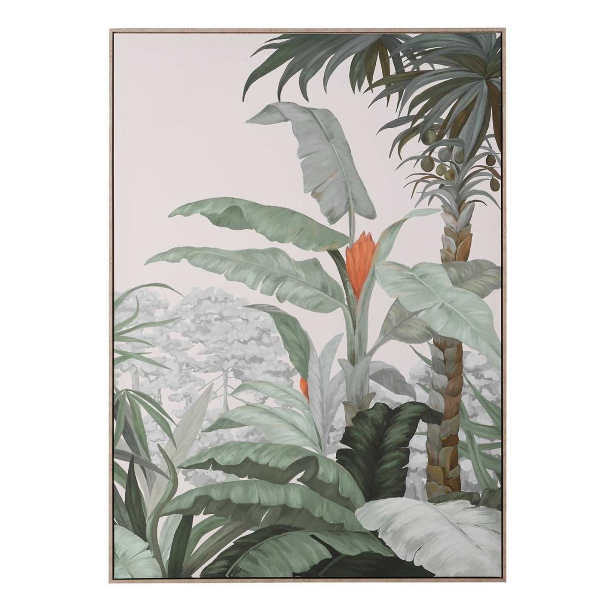 Design. With a subdue mix of greys and greens, plus a dash of striking orange, The Jungle Canvas will create interest in any modern interior setting. The delicate brushstrokes of the leaves and trees can be admired alongside indoor plants and other natural accessories to create a look that is on trend.