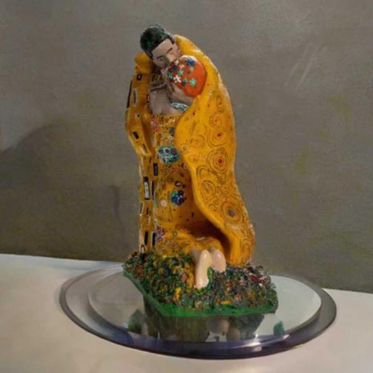 I love this little Kiss in its blend of vibrant colours and striking form, making it a standout piece that adds personality to any space. It works particularly well in contemporary or eclectic interiors, where it can serve as a conversational focal point. To style it effectively, consider placing it on a side table or mantle with minimalist surroundings to let the sculpture shine, or group it with other art pieces for a curated look. Keep the surrounding decor simple and understated to ensure this colourful kiss remains centre stage, and don’t be afraid to mix it with bold textures or patterns for a playful, artistic vibe.
