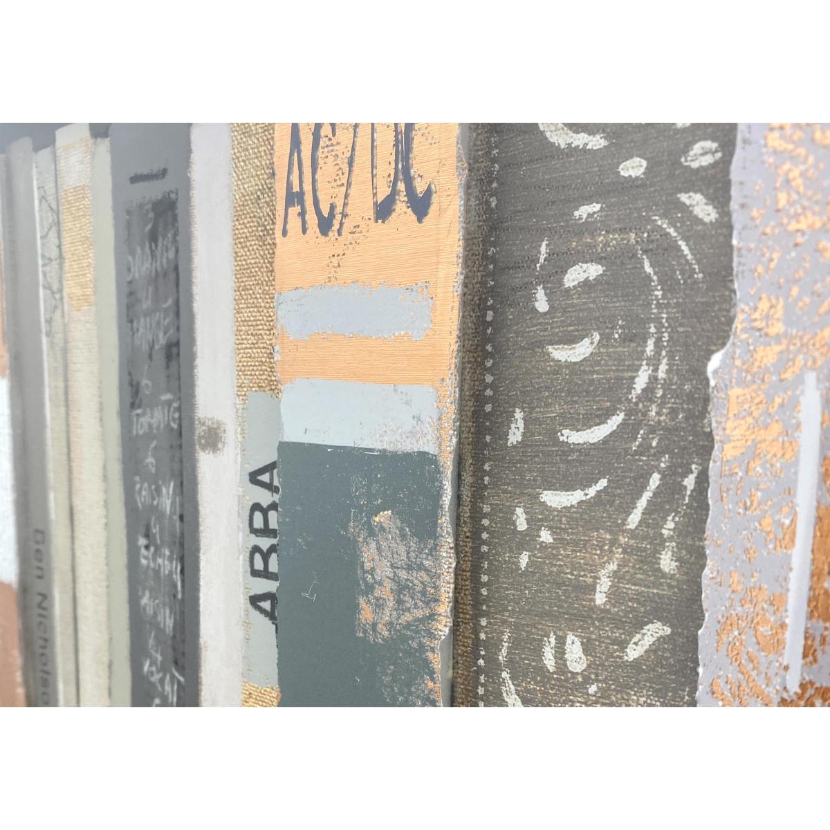 With books on Bowie, Warhol, Hockney and Dylan, artist Sabrina Roscinos library is one youll want to lose yourself in. With artfully mismatched fonts, hand embellished foil highlights and a tonal grey palette, these images of books really do speak volumes. Why you'll love it Framed wall art of a stylised library of books. Tonal grey palette highlighted with hand embellished coppery foil accents. Celebrates the 20th centurys most iconic cultural creators. Made with care for Furniture Village. What you need to know Square framed glazed artwork by Sabrina Roscino. Mounted on white cardboard with striking black frame. Dimensions Height:90cm (36inches) Width:90cm (36inches) Depth:3cm (1 inch) Weight: 9kg