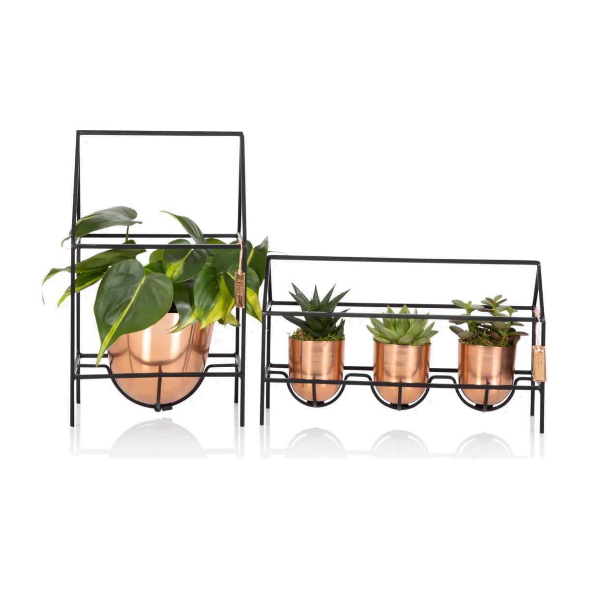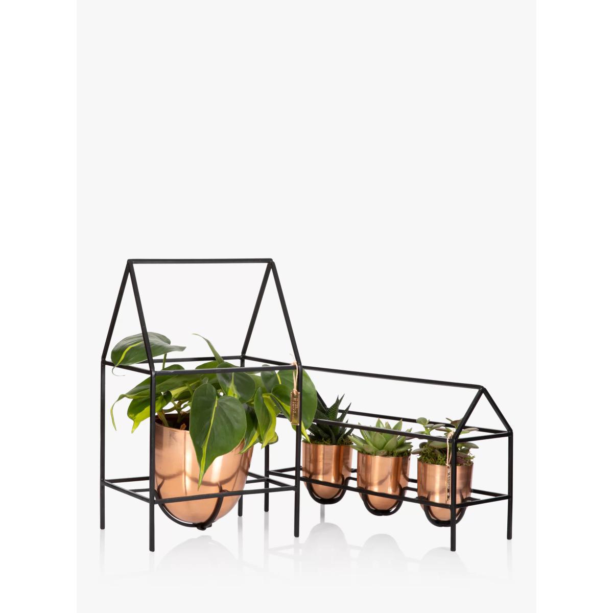 The Copper House Gang includes a trio of gorgeous succulents and a trailing beauty, both potted in copper pots in a stylish black metal house. This plant gang brings a stylish addition to your home, adding some warmth and colour to your interiors. Gorgeous greenery planted in these stunning copper and black metal houses is the interior lovers dream. The contrast of the lush, green leaves against the warm copper tones of the pots is just beautiful. This gang includes: Philodendron in Copper House (House measures: length 21cm x height 33.5cm x width 15cm). Copper Trio Succulent House, including 1x Mini Haworthia, 1x Mini Miranda and 1x Mini Crassula (House measures: length 32cm x height 20cm x width 11cm). The Philodendron plant is a fast grower in good light and the shape of the metal house means the plant can climb and trail beautifully. The trio of succulents are so easy to care for and happy to grow almost anywhere in your home. Stylish, fresh and chic – just perfect if you’re looking to green up a shelf or coffee table. This gorgeous set is a ready-made green gift, once they’re unpacked they will add an instant pop of colour to your home. Why not add this pretty plant gang to your home or send your succulent-loving friend a gorgeous green parcel. They will be delighted to open the box and find these little gems. Please note: The variety of Philodendron may vary from photo (Varieties; Cordatum or Brasil). Caring for your plant Always follow the attached care instructions. Whilst this will give your plants the best chance of thriving, environmental factors will also play a big impact on your plant's life span such as exposure to sun and humidity. Please note: As plants are a live product, the dimensions and images provided are estimates only as each plant is unique. How to add a personal message to your plant Place your order Immediately email your gift message to johnlewis@thelittlebotanical.com including your order number in the email subject Refund policy We can't offer refunds or exchanges on perishable goods such as flowers and food, unless faulty or not as described.. This does not affect your statutory rights. FIND KEEP GIVE - Gifts designed & curated by us Everything we are goes into everything we do, and this is showcased in our uniquely designed gifting collection. Made of a vast range of indulgent gifting products, the FIND KEEP GIVE collection is ideal whether you are looking for the perfect presents for friends and family or the ideal from me, to me item.