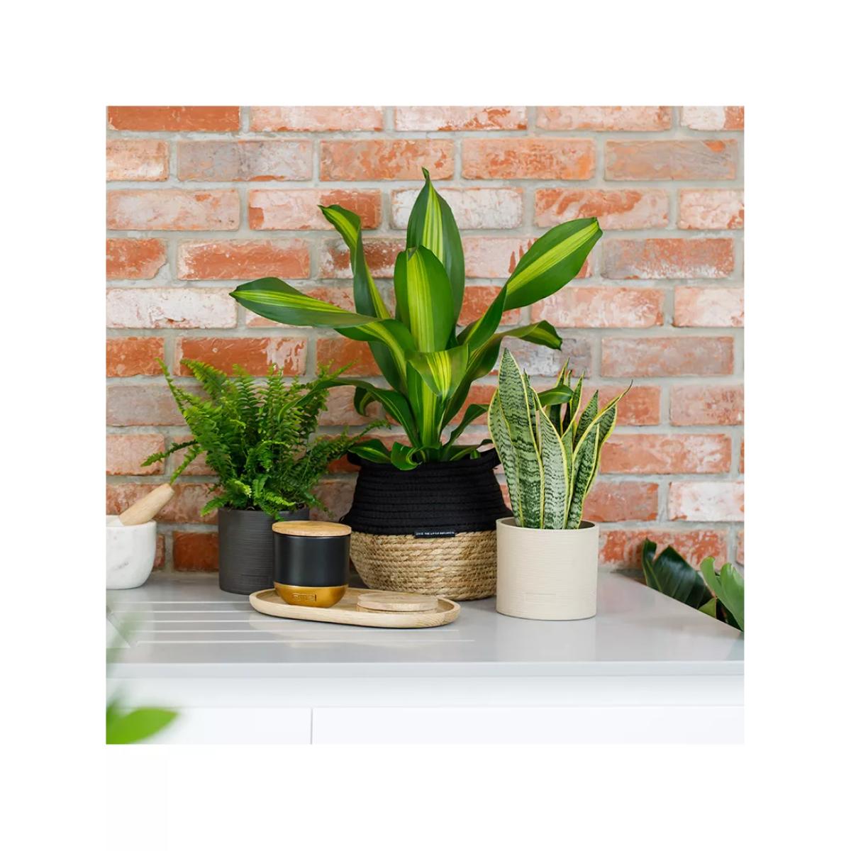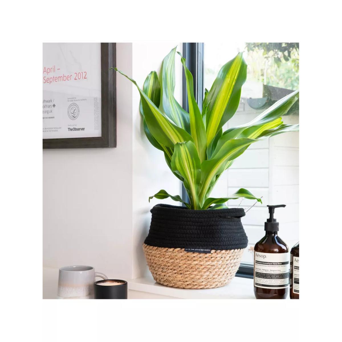 If you are looking for a plant for a slightly darker corner of your home, then this Dracaena Burley Head measuring 40-45cm total height is for you. This plant copes well in low light levels but will also thrive in a brighter spot. With those bold yellow and green leaves, this plant loves to be the centre of attention and has got what it takes to pull it off. This big house plant is just fabulous to look at and is super low-maintenance too. Watering once every 2-3 weeks and giving those leaves a dust occasionally will keep him happy, he doesn’t need much TLC. H60 x W36 x D35 cm Please note: This plant and basket will come in separate boxes, you simply drop the plant in its growing pot, into the basket and it is ready for its forever home! The basket is sized to allow the growth of the plant. Dracaenas like a slightly shady spot in your home. Do not place your plant in direct sunlight or the leaves could scorch. A cupful of water once every 10-14 days and only once the soil is dry on top. Remove any brown leaves to encourage new growth. Check the soil regularly, Dracaena’s don’t fare well if they are overwatered. Don’t forget to keep them out of draughts and away from radiators. They’ll thrive in medium light and high humidity. Caring for your plant Always follow the attached care instructions. Whilst this will give your plants the best chance of thriving, environmental factors will also play a big impact on your plant's life span such as exposure to sun and humidity. Please note: As plants are a live product, the dimensions and images provided are estimates only as each plant is unique. Refund policy We can't offer refunds or exchanges on perishable goods such as flowers and food, unless faulty or not as described. Find out more. This does not affect your statutory rights.