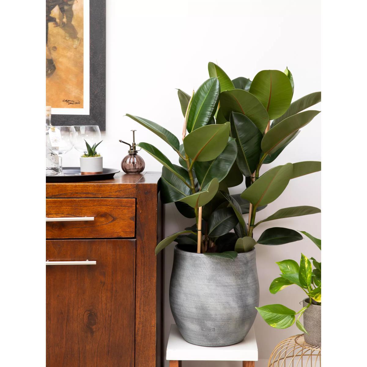 Made in the UK This leafy Ficus Elastica, otherwise knows as a rubber plant, is a shiny green beauty. The thick glossy leaves contrast beautifully with The Little Botanical concrete finish ceramic. This plant measuring up to 1m in height will truly transform a corner of your home or office. The Ficus Elastica likes a bright position in your home. It doesn't fair well in a low light position. Water once a week in Summer and once every 10-14 days in the Winter. Check the soil weekly and water if dry. Note: If you are a latex allergy sufferer then this isn't the plant for you! Estimated height: 90cm - 1m Internal Pot diameter: 25cm Pot Height: 33cm Note: The plant and ceramic will arrive in separate boxes. Just pop the plant in the ceramic and it's ready for it's forever home. People with Asthma and Latex allergies should avoid this plant. Caring for your plant Always follow the attached care instructions. Whilst this will give your plants the best chance of thriving, environmental factors will also play a big impact on your plant's life span such as exposure to sun and humidity. Please note As plants are a live product, the dimensions and images provided are estimates only as each plant is unique. How to add a personal message to your plant: Place your order Immediately email your gift message to johnlewis@thelittlebotanical.com including your order number in the email subject. FIND KEEP GIVE - Gifts designed & curated by us Everything we are goes into everything we do, and this is showcased in our uniquely designed gifting collection. Made of a vast range of indulgent gifting products, the FIND KEEP GIVE collection is ideal whether you are looking for the perfect presents for friends and family or the ideal from me, to me item. Refund policy We can't offer refunds or exchanges on perishable goods such as flowers and food, unless faulty or not as described.. This does not affect your statutory rights.