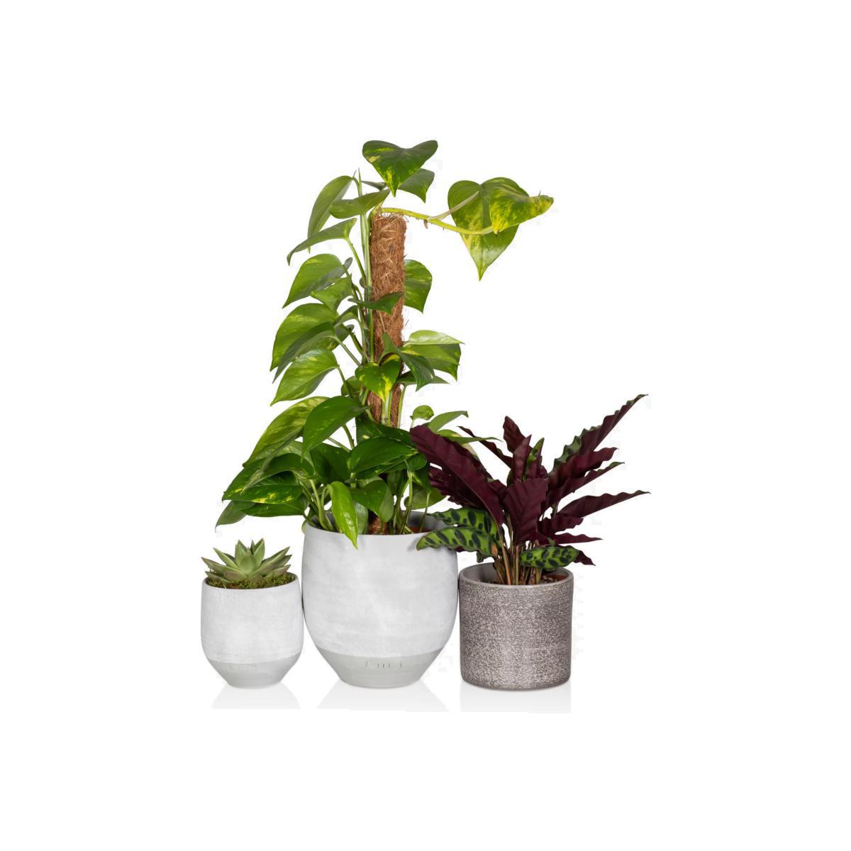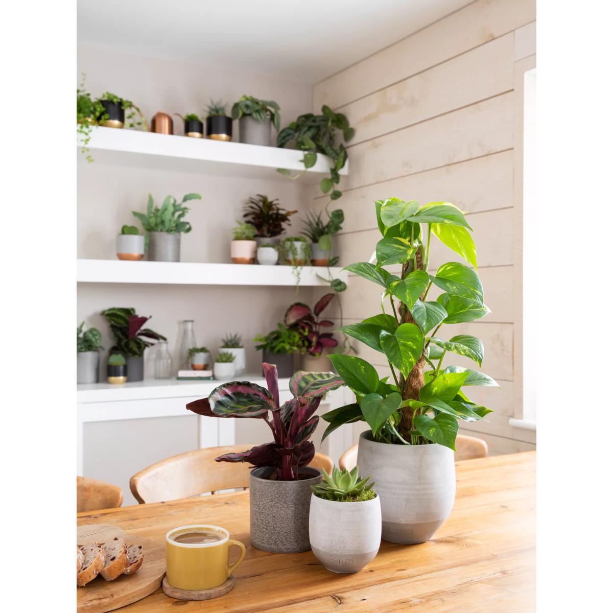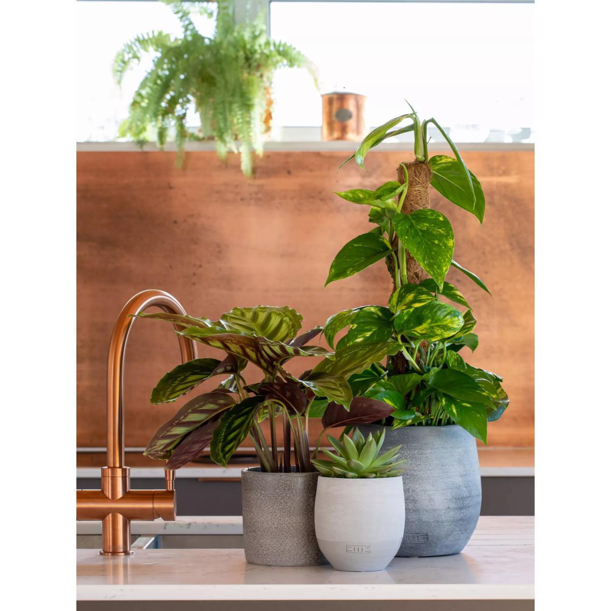 This is the perfect plant gang of houseplants. Join the popular green jungle movement by adding these 3 beauties to your home. Selected to be easy to care for, these will transform any space. Plants included; a Large Scindapsus, a Calathea houseplant and a Medium Echeveria Miranda. Both the Scindapsus and Calathea green plants need watering once a week and the Miranda should be watered every 3-4 weeks. The plants potted in their classic grey ceramics will arrive in separate boxes and once unpacked will instantly green up your home and help create that jungle vibe. Caring for your plant Always follow the attached care instructions. Whilst this will give your plants the best chance of thriving, environmental factors will also play a big impact on your plant's life span such as exposure to sun and humidity. Please note As plants are a live product, the dimensions and images provided are estimates only as each plant is unique. As this is a natural plant, the variety of Calathea may vary from the photo. We think all of its patterns are beautiful! How to add a personal message to your plant Place your order Immediately email your gift message to johnlewis@thelittlebotanical.com including your order number in the email subject Refund policy We can't offer refunds or exchanges on perishable goods such as flowers and food, unless faulty or not as described.. This does not affect your statutory rights. FIND KEEP GIVE - Gifts designed & curated by us Everything we are goes into everything we do, and this is showcased in our uniquely designed gifting collection. Made of a vast range of indulgent gifting products, the FIND KEEP GIVE collection is ideal whether you are looking for the perfect presents for friends and family or the ideal from me, to me item.